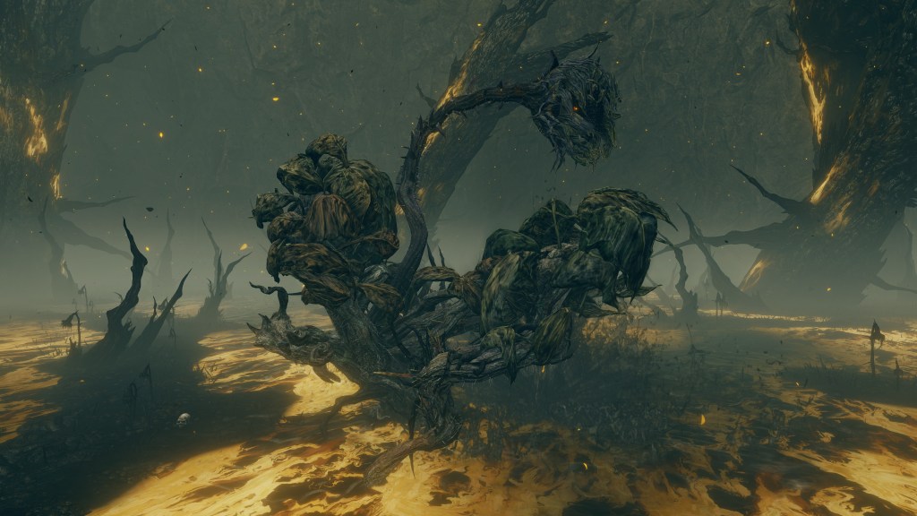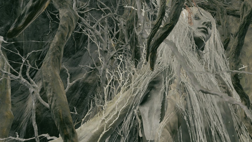 The Erdtree shows itself to be not just a collector, but a recorder of souls as well. Defeating certain bosses rewards us with a remembrance, a large collection of runes arranged to resemble the enemy as encountered prior to death; based on their individual menu graphics, even taking on the hue of the owner’s specific magical affinity. These recollections aren’t mere hollow imitations, however, since Enia can use the Two Fingers’ power to derive items either owned by the boss or somehow related to them — for example, the Grafted Dragon is a unique weapon based on the head Godrick grafts to his arm during our fight. This may only be a slice of the complete soul record, hence the ability to record even the Elden Beast. Still, each and every one is engraved into the Erdtree, a permanent database for at least the powerful souls. And this is most likely due to the pervasiveness of its roots wherever we encounter a boss, sensing nearby runes it hopes to one day absorb through the soil.