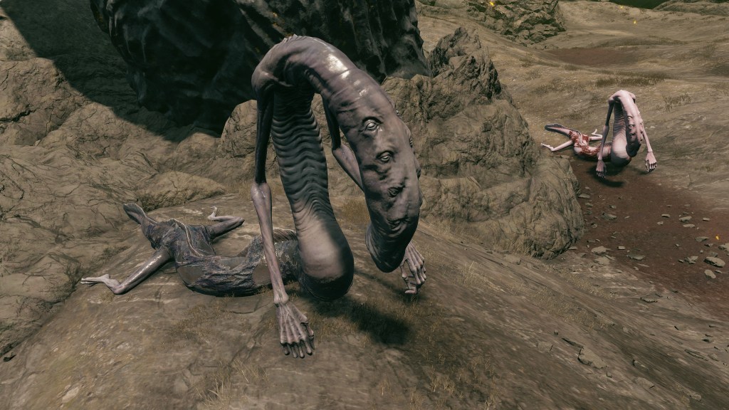 Given their emphasis on the Two Fingers, it is possible that the hinterland village incorporated the festival on a purely mercenary basis. The bones used in the killings enabled them to collect golden runes, thereby recover power of the Elden Ring. While snake worshipers might not have cared for that quirk of their ceremonies, it would have been invaluable to priestesses seeking the Fingers’ favor after the collapse of Rauh — absent the Ring, every sliver of gold counted. There is also the need for men to repopulate an all-female village, with the festivities solving both how to get as well get rid of them. And if those were the main draws of the festival for shaman culture, then they may not have even practiced extraneous elements like the cannibalism. That could explain leaving their victims’ remains on a hill outside the village, saving them from the smell; anyone accustomed to skinning and eating the dead might not care. However, there are indications of shamans devouring their same species with the lampreys.