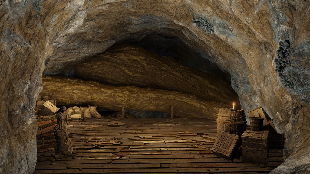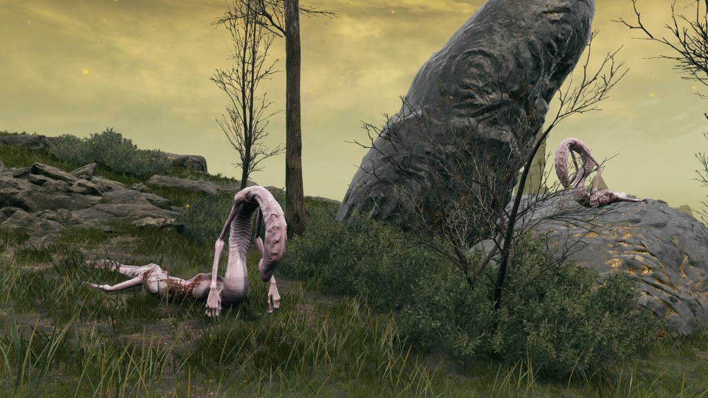 Why a clan of Numen took such interest in the Fingers is easy to infer. The entire hinterland stands in stark contrast to the rest of the Scaduview highlands, but the village stands out in particular for preserving the same combination of yellow and green trees growing in the Rauh Ruins. This naturally implies that the Numen originate from that area, maybe even descending from Rauh’s god. It would explain Marika’s Hammer passing into the hands of her clan and remaining under their care. Maybe the shamans specifically came from a smithing background — aside from using the tool to break apart and repair the Elden Ring, Marika reaches out to Hewg to forge a weapon capable of slaying gods during her imprisonment. But whether or not the woman has any particular experience with artisanry, her lineage assuredly traces back to neighboring Rauh. And with the ancient civilization’s collapse, it is logical for survivors to seek answers from the Finger Ruins close by. What did their people do wrong? How could they repent? Where was their path forward?