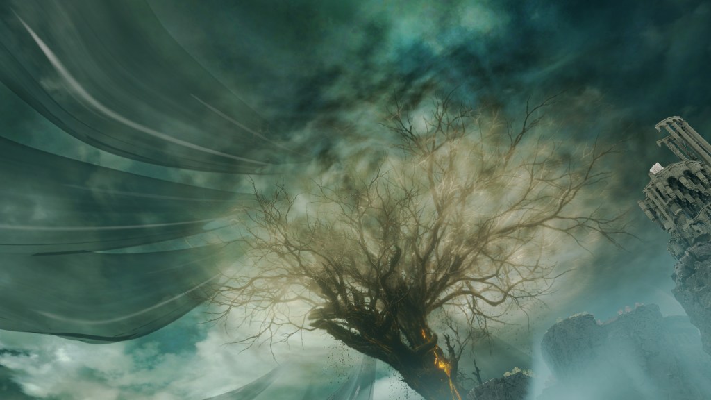 As the single most prevalent landmark in the Lands Between, the Erdtree has unsurprisingly been the greatest catalyst of change since the Elden Ring first arrived on earth. This is especially appropriate given that they are one and the same. The official website prologue declares the Elden Ring to be the “source” of the Erdtree. A spirit likewise equates the tree with the Golden Order. Cut dialogue similarly uses the two interchangeably in its request for order and guidance. In short, all three are synonymous; the Order is an extension of the Tree which is an extension of the Ring. They are inexorably intertwined, hence breaking the Ring causes the “Golden Tree” (黄金樹) to wither as well. Meanwhile, the name Erdtree derives from the Germanic erde meaning “earth”, making it the “earth tree” in obvious parallel to the world tree of Norse mythology — a fitting allusion for the tree whose gold at its root defines the world. The great tree is sustained by the Elden Ring’s life force and conversely acts as a conduit for its power. But how and when did this Erdtree come about?