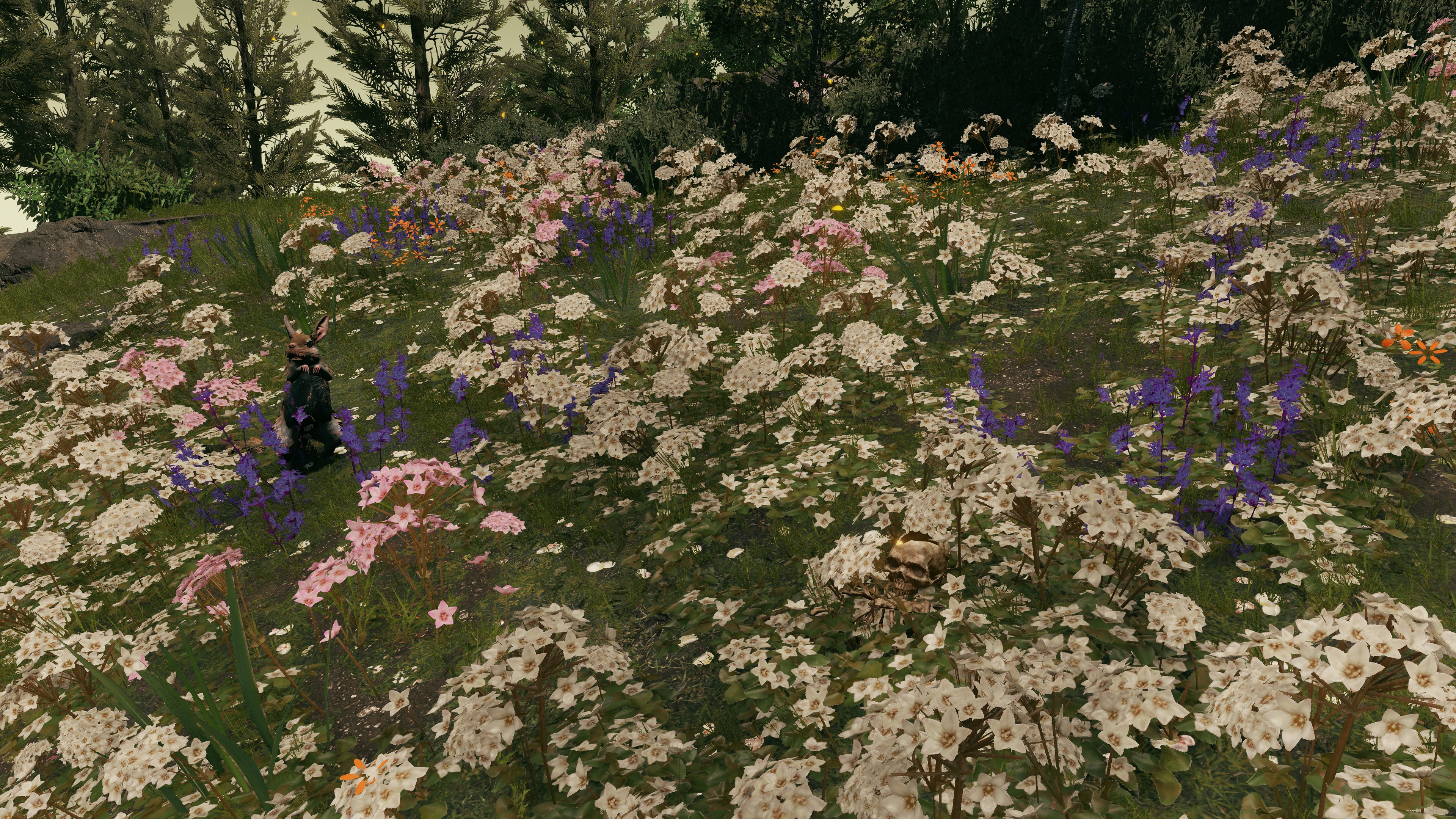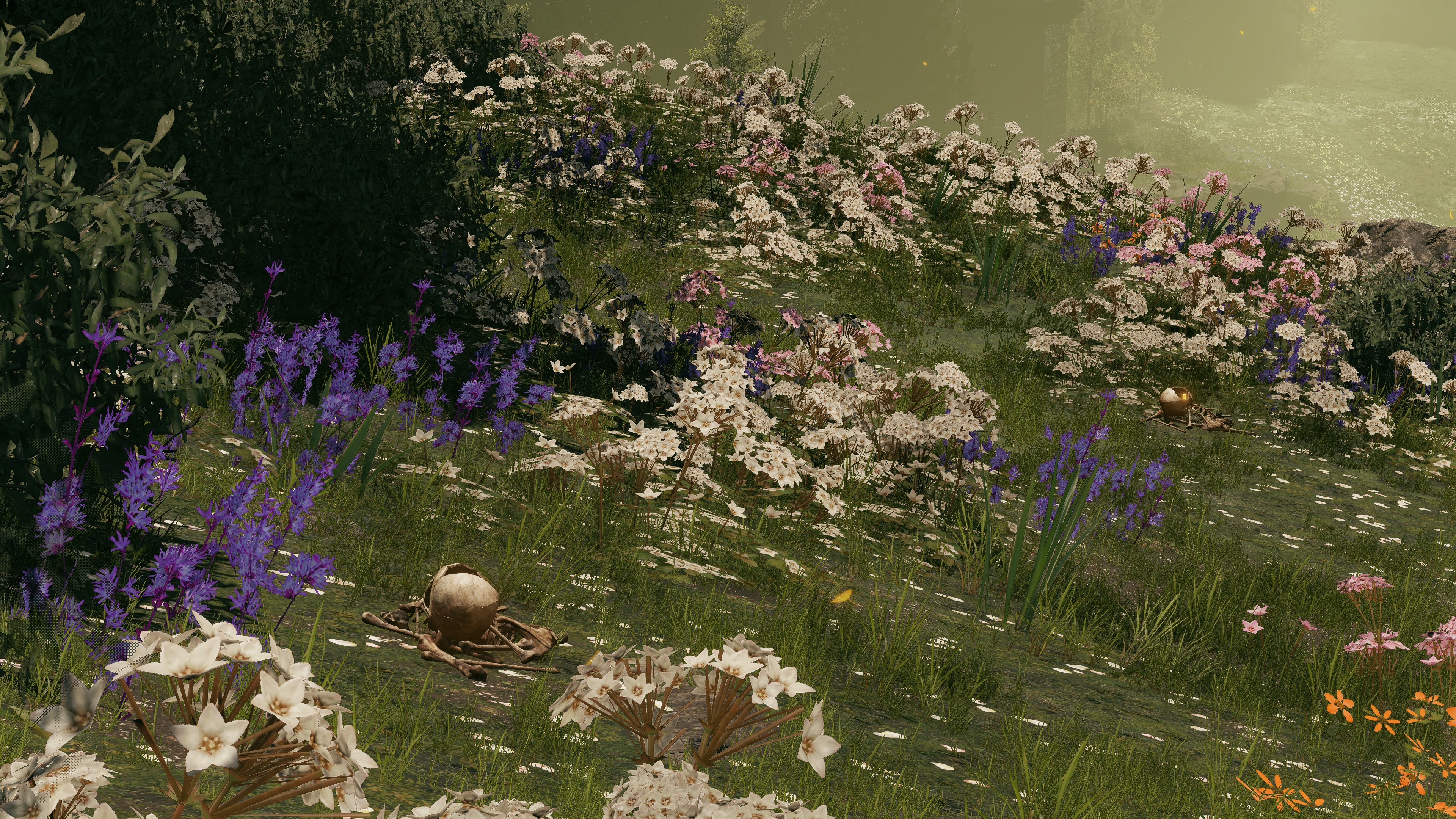We can harvest random individual sunflowers — tarnished and otherwise — all across Altus, suggesting that the tree itself produces this vegetation. Adding to the insinuation, small patches of consistently tarnished sunflowers grow erratically throughout other lands, from Liurnia to Weeping Peninsula. Based on the pattern, significant spurts of holy power occasionally get absorbed by land beyond the tree’s typical range to produce the unique flowers; within its vicinity, the same phenomenon is much more common yet diffused. This explains why we don’t see other hallmarks of the tree’s influence, such as yellow grass, coinciding with their every appearance. The sunflower patches are ultimately outliers, anomalies, like small water spatter from a bubbling pot. In this way, the golden sunflower is just another example of the Erdtree’s disproportionate effects on the plateau’s ecosystem, an entire new species of plant emerging thanks to the power of the Elden Ring.