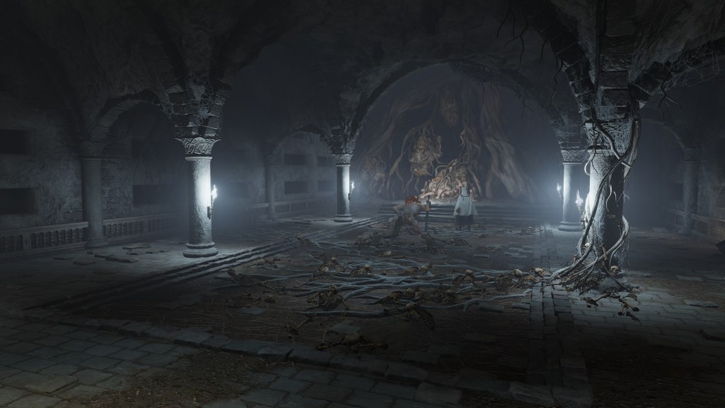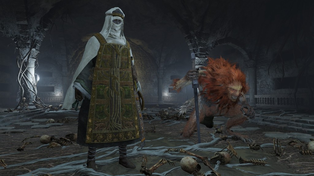 This viewpoint was naturally passed onto the priesthood. The best among them, like Tricia, are called “Soothing Hand”, (癒し手) a common term for a doctor or healer. In Tricia’s case, she earned the name aspiring to remedy “corruption” like hybrids. This gives the Soothing Hand a “noble” gravitas befitting her Latin name “Trisha”, (トリシャ) helping the less fortunate find a way back in line with the Order. But in truth, the gentle touch of this noble soul brings only the peace of death. The unsightly corrupted she tries to remedy are “broken” and ultimately buried beneath the Perfumer’s Ruins, where we find her alongside the leader to a pack of misbegotten. There in those Unsightly Catacombs, the healer remains to comfort them as their companion, making her failed test subjects’ final days painless at least. The implicit cruelty to such sympathy is clear as day. The perfumers might primarily exist to remedy, but that won’t always be the result, especially when their patients were abominations to the faith.