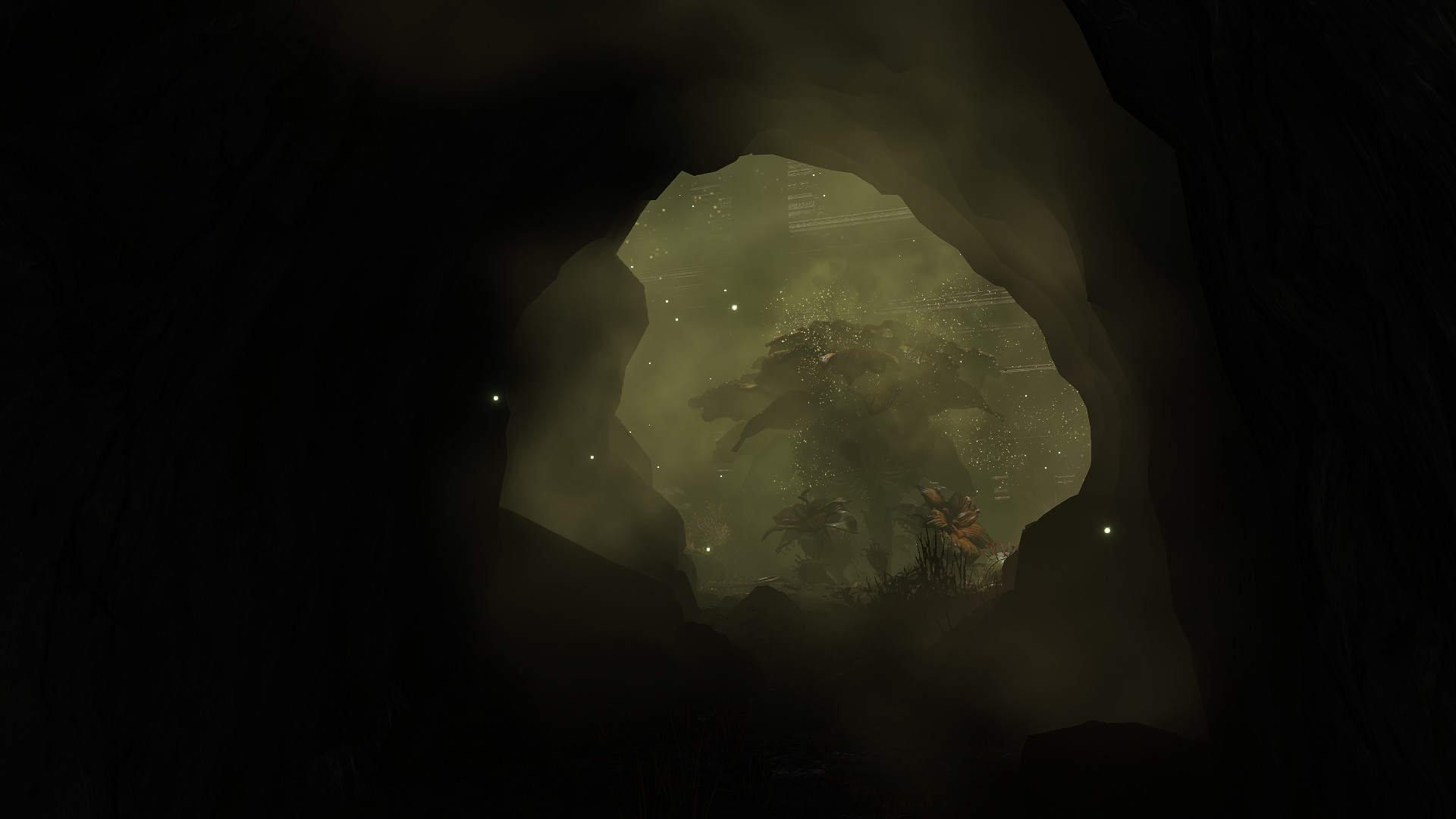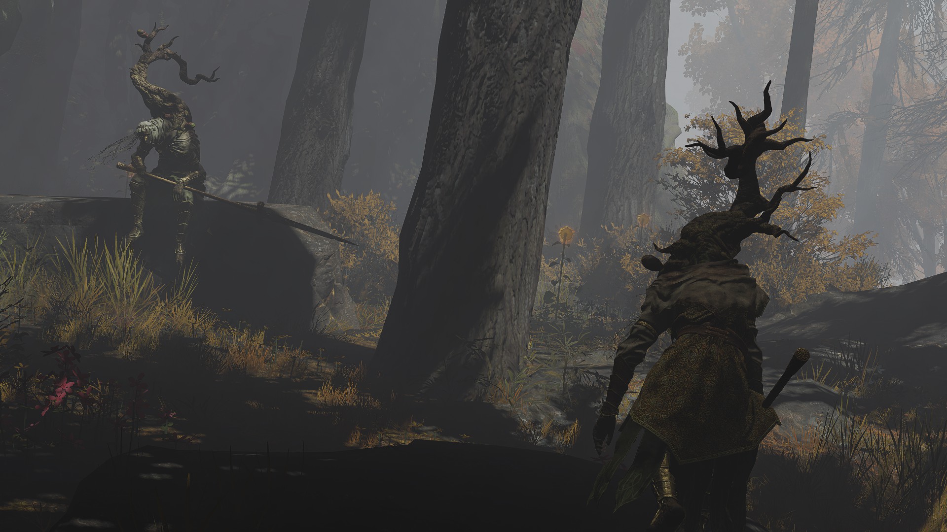 The Ulcerated Tree Spirits are a localized phenomenon, appearing merely in places where the tree in question is immediately threatened. As the name implies, they are another aspect of its will like the avatars, only “ulcerated” (爛れた) in the sense that the so-called spirit’s arboreal body festers with some kind of viscous inflammation. In other words, the enemy is a reflexive reaction to an ongoing danger, no different from how our immune systems respond to harms. In this case, those dangerous stimuli chiefly concern flame, Deathblight, or Scarlet Rot, the spirit often violently emerging out of the ground where the great roots are plagued; in the few other circumstances, the spirit’s body still manifests from a golden miasma hanging in front of the tree. This explains why the spirit, with its holy powers, has a more chaotic, bestial form and behavior compared to the avatar — no time to formulate a “measured” solution in a panic. The enemy is a rapid outgrowth of desperation in a specific area, completely decentralized.