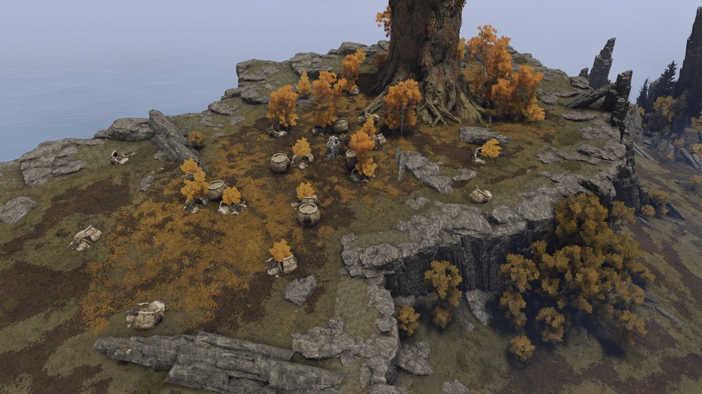 Eochaid is described as a “small country” (小国) the same as the feudal domains ruled over by the Erdtree kingdom’s various lords like Kenneth Haight. In Kenneth’s case, he rules over part of Eastern Limgrave from Fort Haight, mainly the Mistwood and ruined settlement hiding therein. But before Leyndell and House Haight laid claim to the land, this out-of-the-way settlement most likely already existed as a foreign nation, namely Eochaid. That destroyed microstate was home to proudly solitary ascetics, which the foggy forest filled with rune bears greatly helps. Moreover, the Regalia of Eochaid lays against one of three simple graves on a beachside cliff facing the Mistwood, insinuating that those buried and the forest they were buried in sight of both belonged to the mysterious small country.