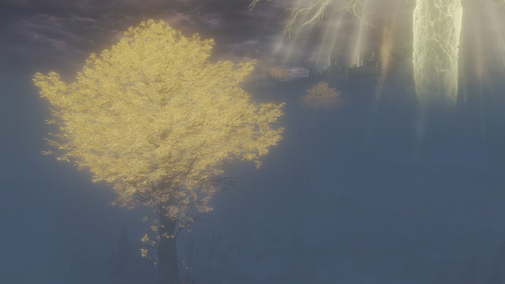 With this in mind, we witness the Minor Erdtree dying on Gelmir manifest its own spirit; defeating the enemy rewards us with the appropriate crystal tears. The association affirms that the spirit, like the tears, are byproducts of the tree reacting to its environment, whether that influence be benign or malignant. This example also proves how the lesser trees’ independence is different from self-sustainment. The Gelmir tree spirit stands in stark contrast from the others stemming from some part of the parent tree, each harboring a new seed — save for those encountered as part of the game’s final gauntlet. Only the Erdtree can continue propagating; its progeny fail to release new spawn even in emergencies. They are ultimately just derivatives of the parent, with incomplete powers afforded to them. The lesser kin can influence and be influenced by their surroundings, but never will they add to their own number. Perhaps if one were implanted with the Elden Ring, this dynamic would change. But as is, trees born of the seeds simply serve to preserve some measure of the Crucible’s gold.