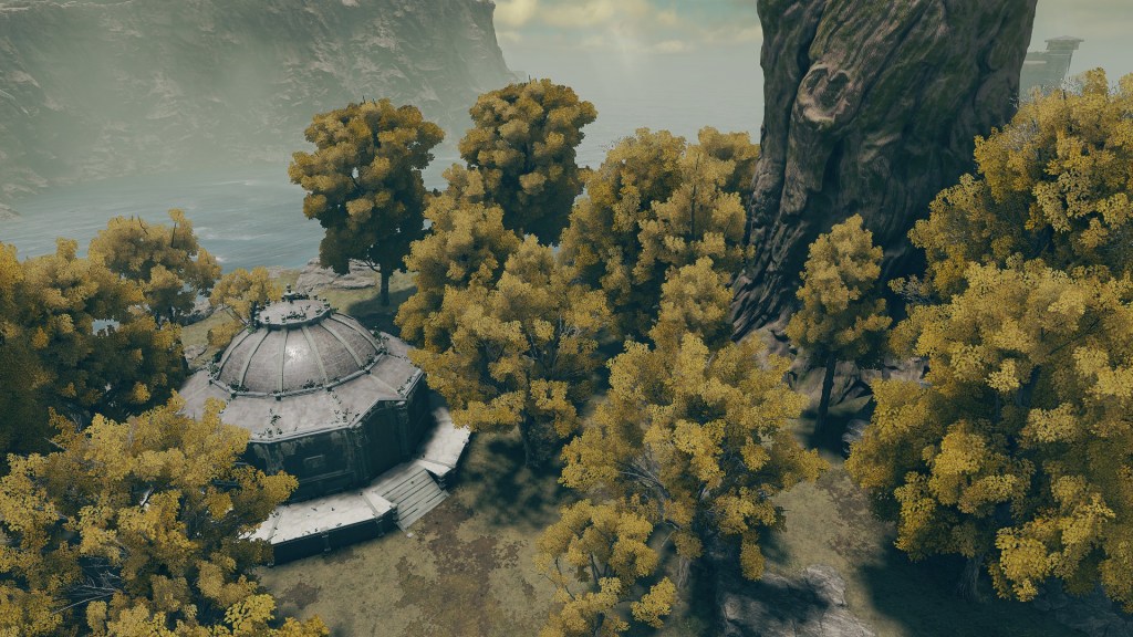 If the Mistwood is tiny Eochaid, then it is easy to see how it came to be established. Despite its remote location on the frontier, the Minor Erdtree nonetheless took root in Limgrave, situated directly between the Sellia and Laskyar populations. Sorcerers traveling to Liurnia or Caelid would inevitably pass by the forest, liable to see the phantom tree as its golden canopy began to poke above the forest. Might curiosity not tempt a few of these astrologers to risk the dangers lurking within that misty maze of trees and investigate this peculiar development? There they would stumble upon not just the Minor Erdtree, but also the hidden well to Siofra, presenting a treasure trove to research. The numbers staying to meditate upon these discoveries began to trickle in, and soon there were enough to form a whole settlement. From then on, the route frequented by astrologers gained a side road for some to walk the ascetic life, lonesome but sovereign. Thanks to where the Erdtree’s seed landed, an entire new culture was born.