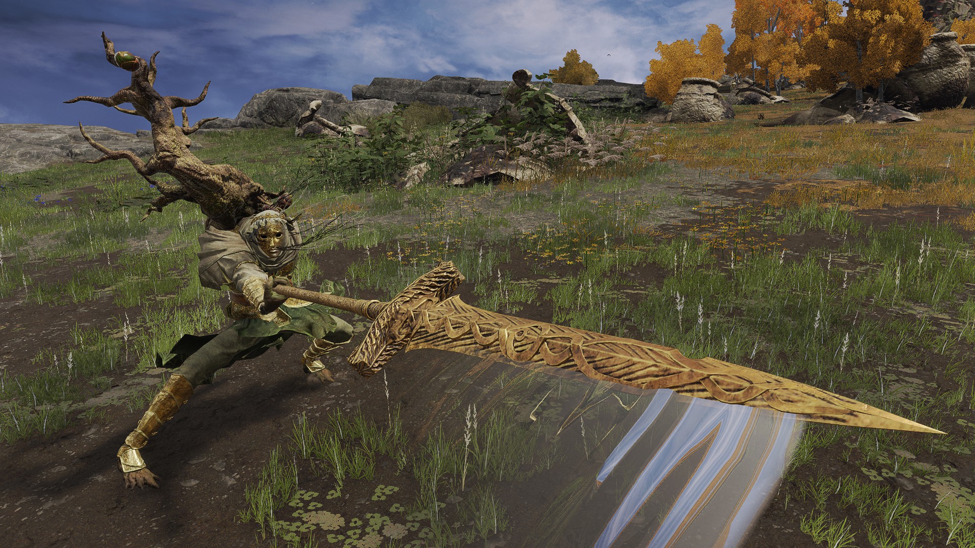 Ceremonial staff enshrining the shining Golden Tree of old. Choice weapon of the avatars that protect Minor Golden Trees.