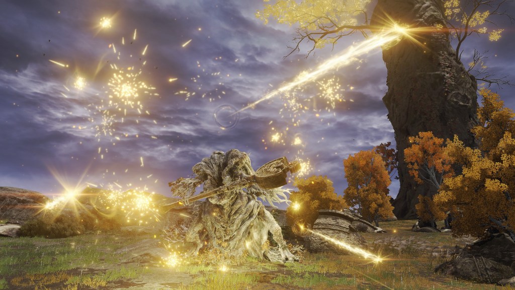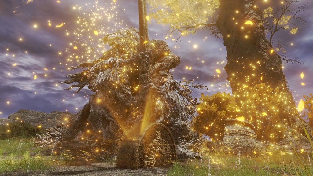 Both the origin in the Crucible’s era and integration with the parent body is demonstrated best by the Erdtree Avatars. These guardians of almost every Minor Erdtree are humanoid in shape but lack a proper head, being arboreal in nature. However, they aren’t offshoots of the golden trees in a physical sense; we see them descend from on high while they manifest, shrouded in an aura of gold already fully formed. Therefore, it is more accurate to say that they are the brainchild, a somatic entity of magical construct — not unlike the Erdtree itself. Factoring in their name, and the avatars function as the will of the Erdtree made manifest. Their lives exist independent of the Minor Erdtree and vice versa, but they are nonetheless aspects of the tree in question. They also all began to appear at around the same time, specifically after the Elden Ring was shattered. Put simply, just as the “dying” Erdtree released a second round of seeds, the first generation of progeny were producing safeguards for themselves. Moreover, the description of their weapon claims this to be the parent tree’s will to protect its offspring.