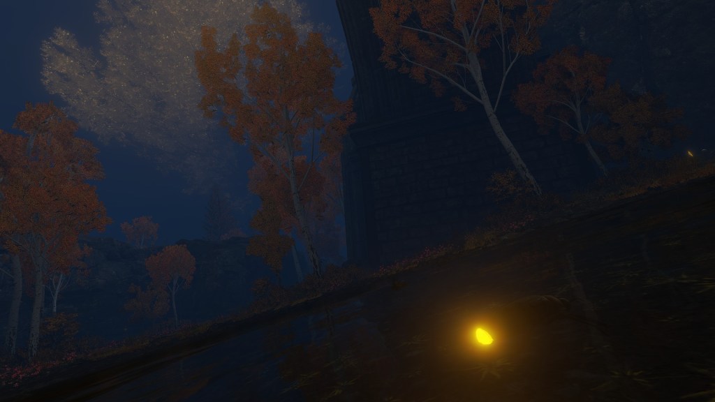 Take, for example, the gold fireflies. Although rarer than their silver counterpart, this species of insect can also be found in pools of water. In their case, it is always ponds within the vicinity of a Minor Erdtree. The indication, of course, is that the bugs have adapted to absorb and channel the power of gold emitted from the trees. The closer the plant, the stronger the energy emitted, the more viable the adaptation. But if so, then the same would logically hold true for fireflies on the plateau in general. And while gold fireflies at Altus are rare in the wild, they aren’t the only source. Besides a single pond near one of the Minor Erdtrees, we can collect more from corpses at both the Shaded Castle and Leyndell. Neither location lies in particular easy reach of the aforementioned pond. And so, it is possible for the gold fireflies to manifest anywhere in Altus, similar to the golden sunflowers — randomly if rarely. In essence, the Erdtree is, again, just as capable of producing them as its lesser kin.