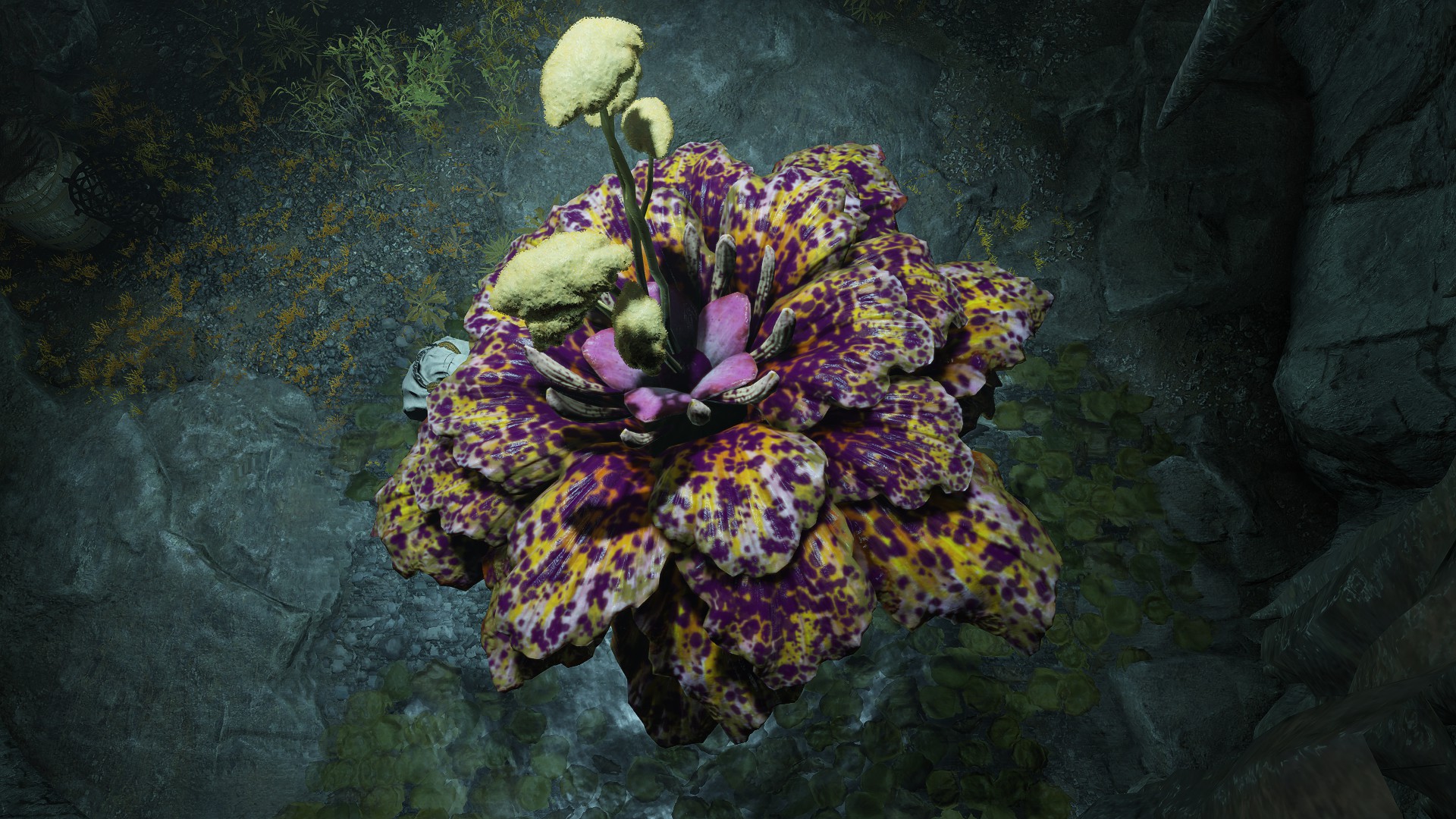 Thanks to this system, the priests have cultivated a deep knowledge along with numerous plants. Among all their specimens, Miranda flowers are especially critical. Besides Altus blooms, Miranda powder is the most common ingredients to their aromatics, their pollen — the “flower powder” (花粉) — serving as an excellent medium for disseminating scented material while possessing a strong aroma of its own when harvested from the source. Its longtime use in perfuming is reflected in the secret gardens. One flower grows new bulbs in the Perfumer’s Ruins alongside yellow flowers and Altus blooms, while more are nurtured at their grotto, one even blocking to hide the cave entrance. The latter are unique breeds with purple spots signaling their deadlier poison, no doubt the product of the priests’ experiments. The numerous living jar shards inside this Perfumer’s Grotto affirms that they raise the man-eating plants on human flesh, whether the jars containing it were taken from catacombs or other sources. Either way, it was a sacrifice for science, paving the way to more and more sophisticated arts.