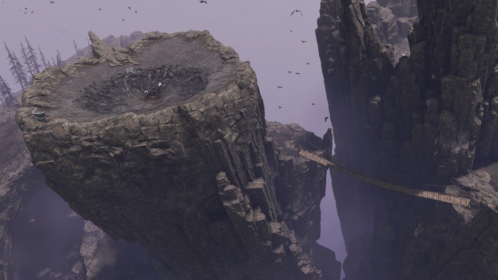 High up on the tallest peak of Gelmir, we can come across a large meteor impact which has, naturally, spawned a Fallingstar Beast. The star seems to have been summoned by a sorcerer, a hemicyclium standing right next to the impact zone. An independent sorcerer climbing to this remote height explains the wooden ladder and rope bridge leading to this area, and this person is no local amateur. The demi-human tribe denning nearby in Volcano Cave have a queen gifted a sorcery staff for her regal scepter. Recall that the staves are provided by sorcerers of the academy, meaning our mountain-climbing researcher liable to build relations with the natives out there in the wilderness must have been one such sorcerer — and there may be more in the region. Another hemicyclium can be found behind the Shaded Castle, implying similar conduct from someone residing at the castle town. Perhaps this is the same sorcerer, unsatisfied with his progress before seeing the remote peak to his west. Regardless, it is proof of astrologers’ presence.