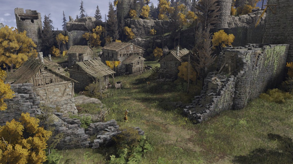 The Frenzied Flame Village (Site F) stands out as the only extant township enclosed by large walls. Overseeing the slopes leading to the hilltop hamlet likewise looms a lookout tower, the remaining walls hinting to a larger fortification once upon a time. The entire setups suggests that this village, reached after a short climb immediately south of Dectus, was prepared for an assault coming up the Bellum Highway. In short, it was probably established in the initial stages of the Second Liurnian War. For sure, the Church of Inhibition overlooking the place implies Marika’s presence at the village, enshrining her statue as it does. What would bring the queen to a walled encampment off the plateau except the war she had a personal stake in, like several before? This was to be the staging ground for Radagon’s new invasion, their base of operations commanded by the kingdom’s god and sovereign. Perhaps that is why Site F was built upon those specific cliffs, next to a Minor Erdtree. If nothing else, the invading tree served as an excellent flag marking her kingdom’s first claim over the foreign land.