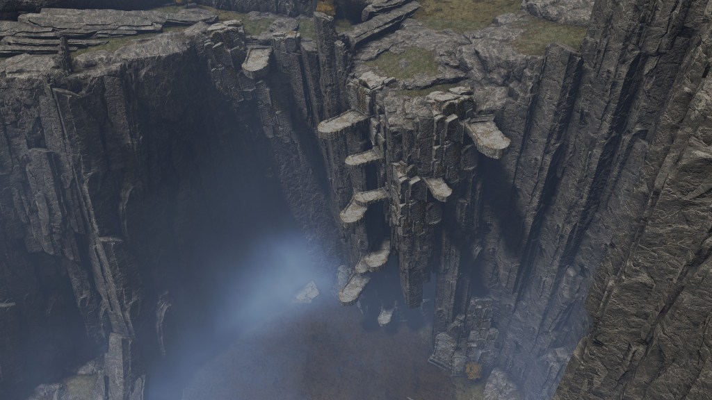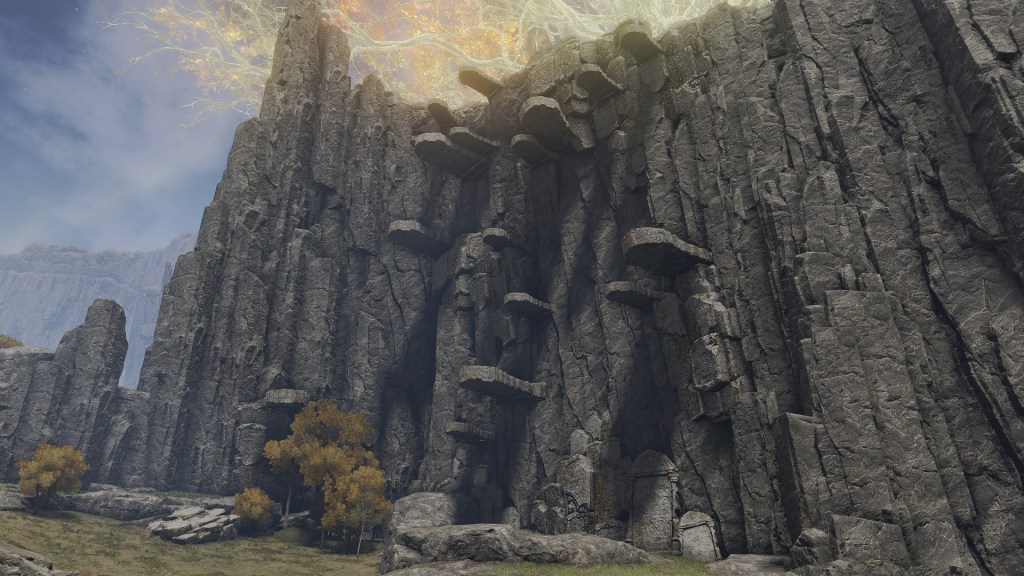 … Therefore, please seek the Old Ruins Precipice. It is an old tunnel lying at the bottom of the valley to the Great Lift’s side… and I have heard that it was mined from both sides, Liurnia and Altus Plateau.