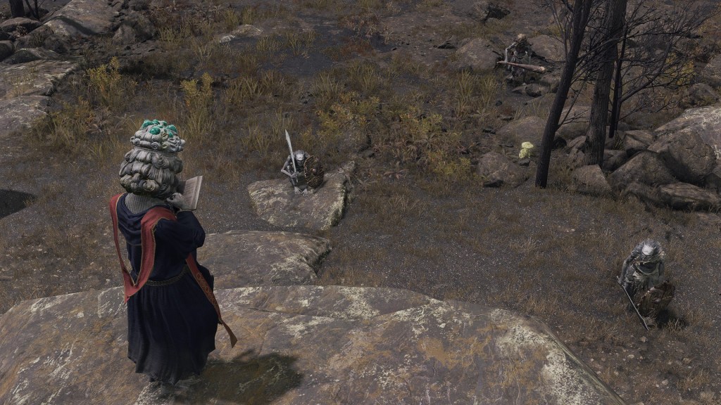 Nobles and their pages lurk not just within the Academy, but also at Caria Manor. The latter is especially curious when looking outside Liurnia — to Limgrave’s far south, one among a group of highborn sorcerers possess Caria’s treasured sorcery scrolls. In other words, certain aristocrats had casual access to previously closely guarded material, likely well before the Shattering. Though the nobles might be incapable of applying the contents, taking them from the manor’s archives was still permissible. Perhaps to be there one needed certain royal connections; it certainly wasn’t personal aptitude. No matter the qualifications, these examples together show that Radagon wasn’t exclusively able to learn sorcery directly from the Carians. Elites of both highland and lowland were intermingling on the daily, with no evident restrictions.