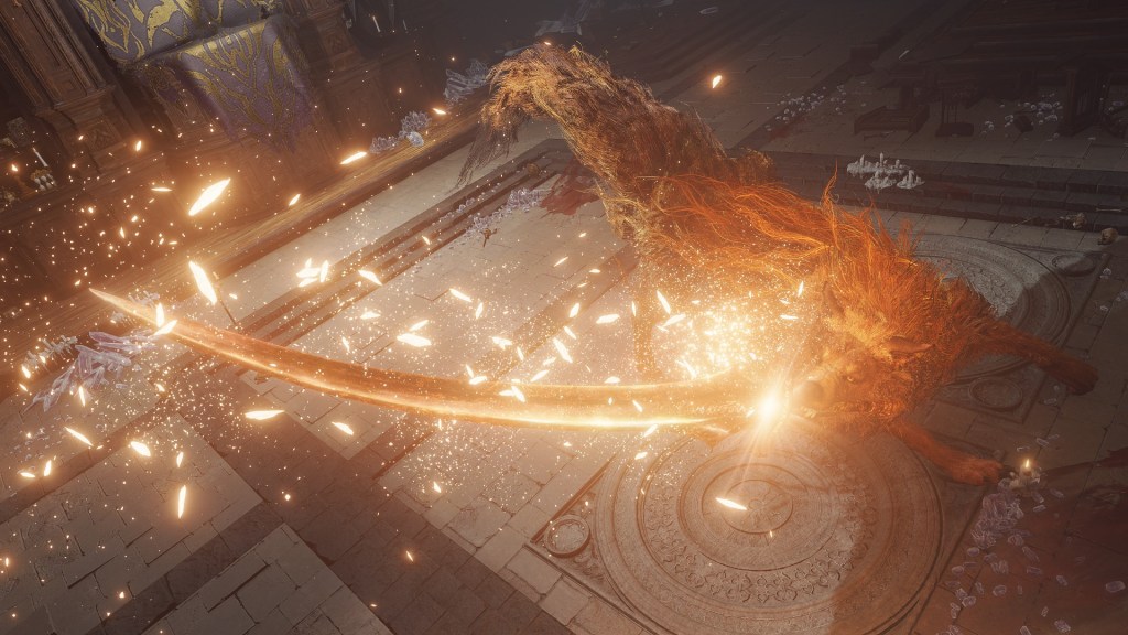 Put simply, the red wolves are most likely artificial creations of Radagon, whether born from scratch or from infusing cubs with the Crucible’s power. Whatever the specifics, the motive is obvious: to recreate a shadowbound beast. Marika’s shadow, Maliketh, was a wolf, after all. If she and her other half were interested in recreating the Two Fingers, why wouldn’t their curiosity extend to the other of the Greater Will’s agents? Combining holy magic with existing lupines is a logical means to explore Maliketh’s nature, as well as a good exercise of Radagon’s sorcery. Of course, the red wolves were all evidently failures, only useful as guard dogs for places like the royal graveyard or the three sister follies. Mayhaps that is why they so often grip their sword to swing left-to-right first like an atypical left-handed swordsman, though this detail may be incidental — the enemy clearly repurposes the Old Wolf of Farron, successor to a lineage of left-hand swordplay cut from DS3 as a boss. In the end, Radagon wasn’t just retreading old ground.