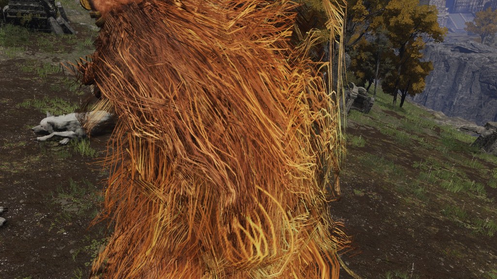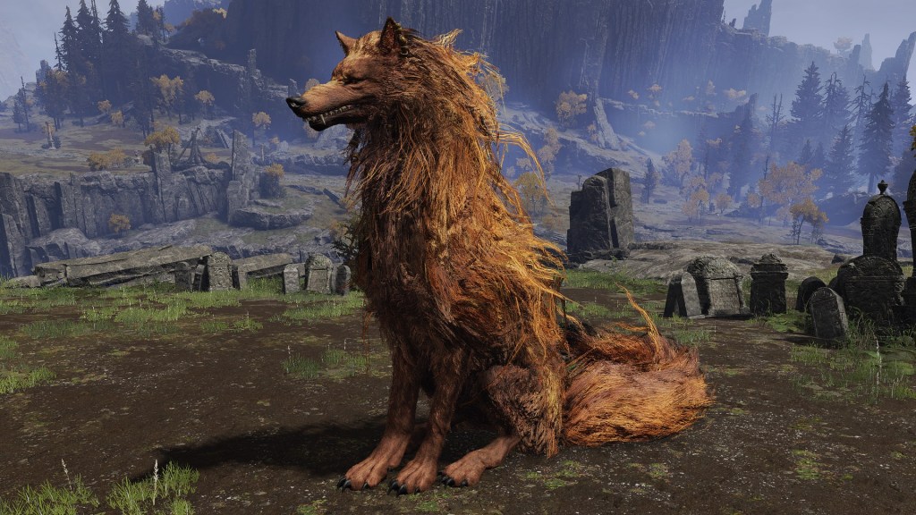 The red wolves of Radagon are presumably the hero’s pets from after his marriage. Half we encounter in areas closely connected to the Carians, while the other half lurk in territories related to his children. All of them show knowledge of Magic Glintblade, leaving no doubt about either their intelligence or their origins with Radagon’s time amongst the Carians. However, this doesn’t explain the nature of those origins. Each wolf sports hair as red as their original owner, though the fur coat also possesses hints of yellow. Certain wolves can also briefly conjure a curved greatsword, wielding it in their mouths like a physical object. This is odd, as the magic used to construct this weapon is red like them. It also produces numerous shards not unlike many holy spells, with the sword itself bearing a glowing runic script. Combined, these various small details indicate a connection to the power of gold, specifically the Crucible’s reddish gold. And although the red wolf proves capable of being the pack alpha to its kin in the wild, the so few known to actually exist suggests they came to be in a more controlled environment.