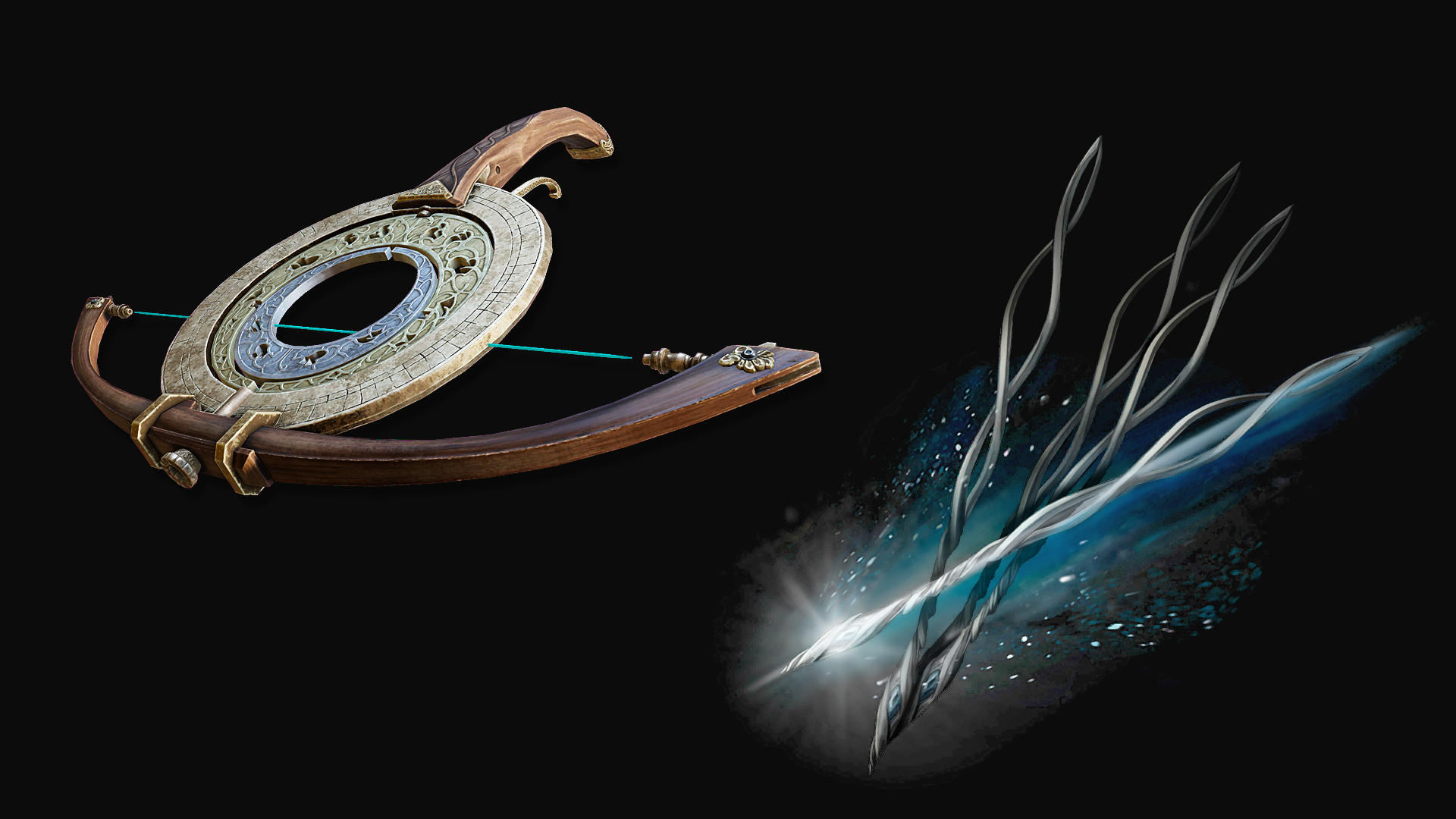 One of a kind crossbow made to celebrate the reconciliation and marriage of Lowdayl and Raya Lucaria, the Golden Tree and the Full Moon. An exquisite sorcery handicraft.