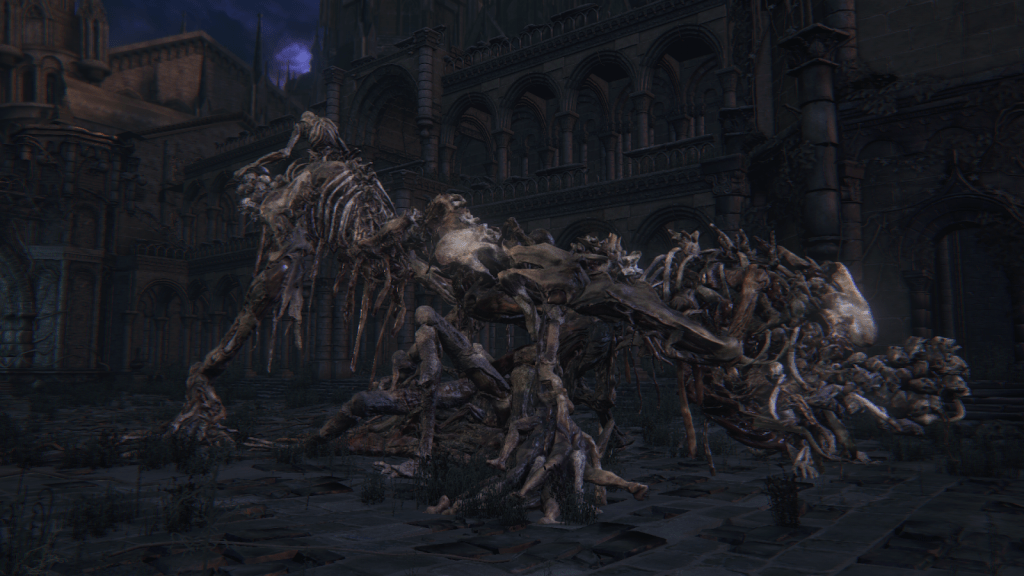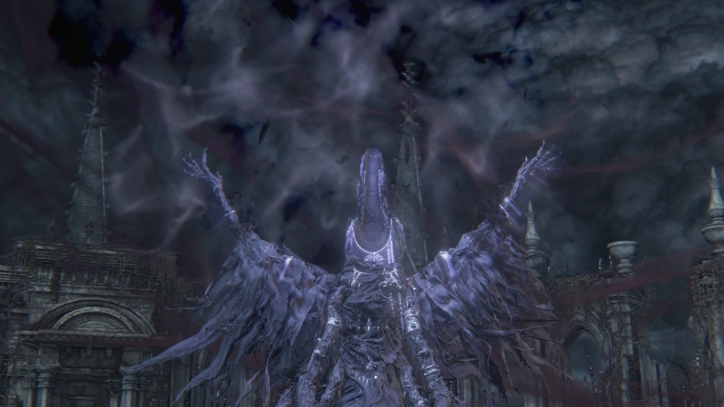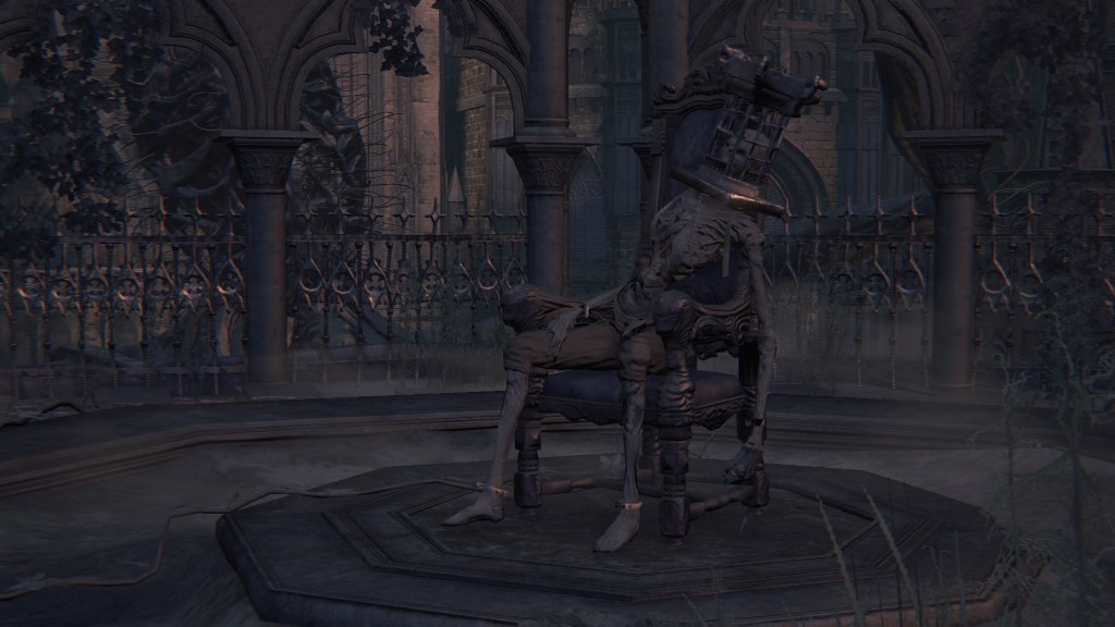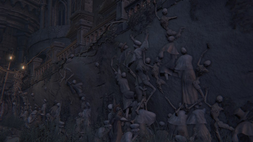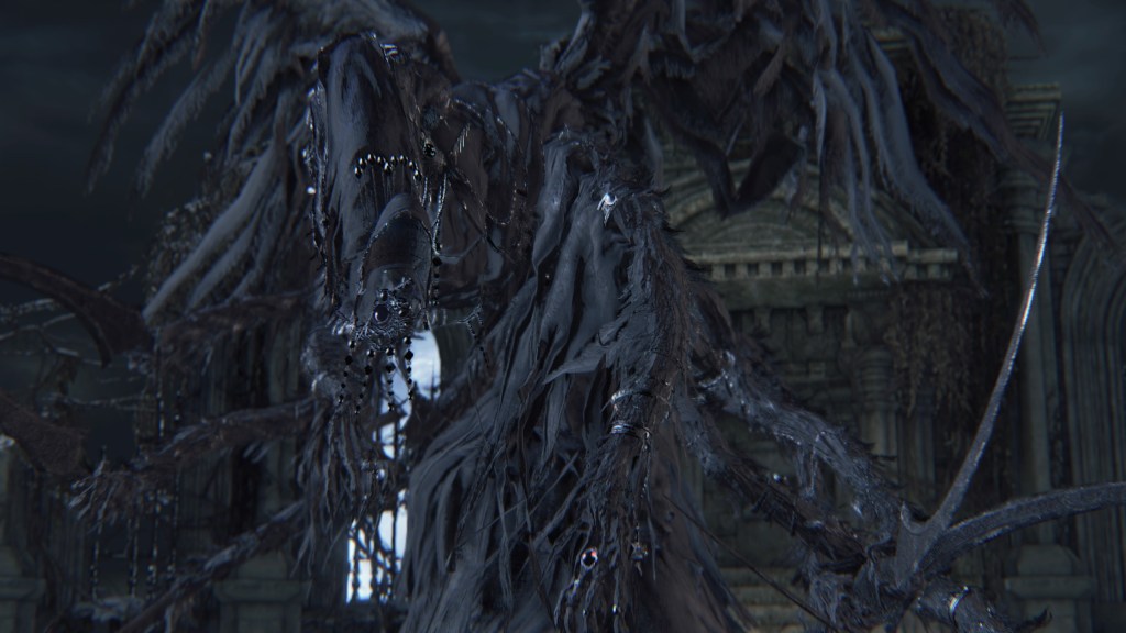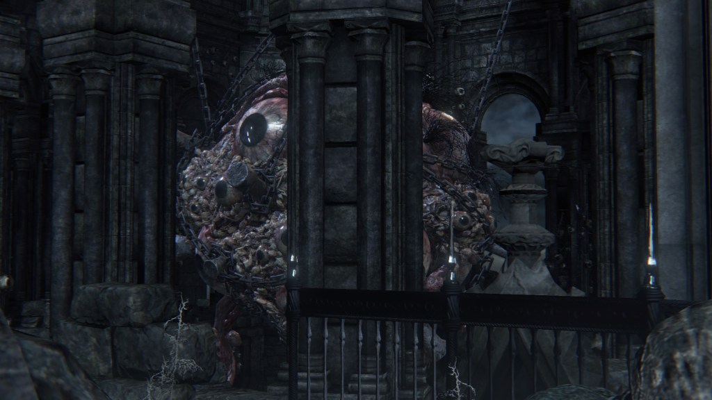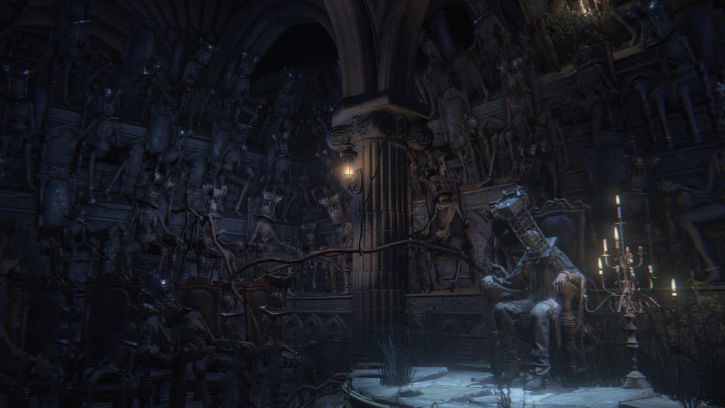 If I had to choose one word to describe the School of Mensis, it would be macabre. There is a delightful villainy to the whole faction absent from so much of Bloodborne. They certainly lend themselves to the game’s most iconic imagery, skirting the line between sterile and viscerally grotesque. But more than any other of the major players, the School feels like it is having “fun”, the energy it brings almost overshadowing the horror. Although a looming threat from early on in the plot, one can imagine that they were chosen as the antagonist for its third act because of that strong impression. Without them, the climax might have been nowhere near as bombastic after so much strenuous buildup. And for how much Mensis ties the narrative together despite little direct involvement in our adventure, I can appreciate FromSoftware making them so memorable.