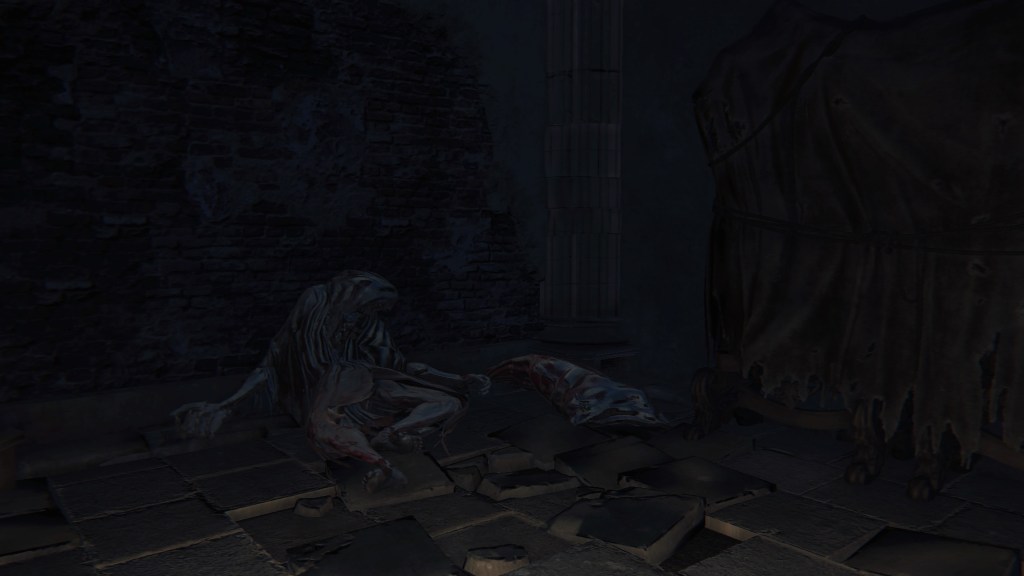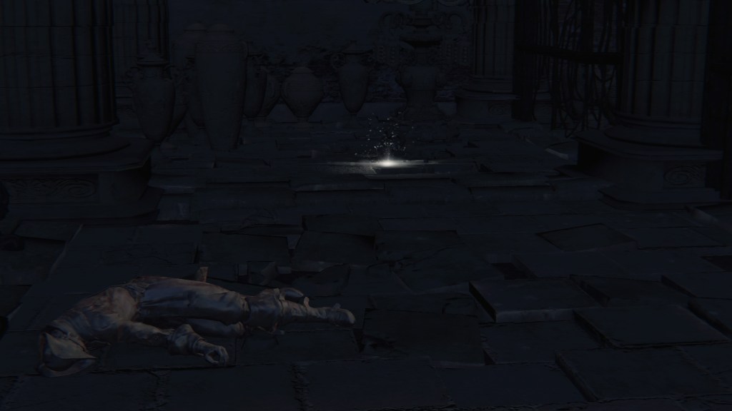 As we explore Yahar’gul’s jails, we come across two different hunter’s notes left near two different hunter corpses. The first we can read reports how the “madmen” and their rituals are being hidden for beckoning the moon, leaving no choice but to break that concealment by Rom. The second, available after the red moon, presciently demands a stop to Mensis’ rituals before everyone ends up a beast. Taken together, these are hunters who chose to pursue the renegade Church faction after the Old Yharnam Incident, leading to Gehrman cutting them off; leaving them helpless when they got locked up while investigating. This isn’t surprising. Considering how Mensis caused the biggest influx of beasts in recent memory, it is understandable that some hunters would deem them a greater priority than the endemic beast problem. Unfortunately for those hunters, they were too few to realistically deal with the threat, and none were equipped for the task regardless.