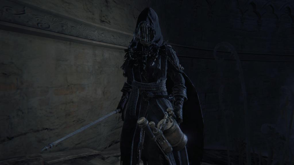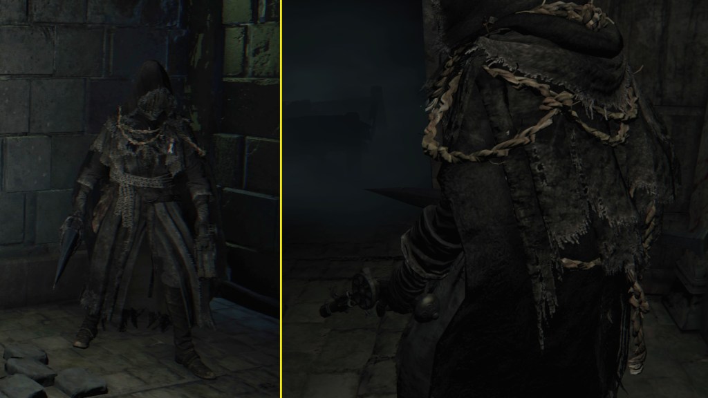 According to descriptions of their attire, the hunters of Yahar’gul are “in contact” (通じる) with the School of Mensis. Although implying a level of intimacy between the two parties, the wording nonetheless indicates them to be distinctly separate. This isn’t surprising, since beast hunts in Yahar’gul’s antiquated armor well predate Mensis. One of the hunters locked away in the Grand Cathedral’s dungeon wears that very attire along with the Repeating Pistol and Church Pick, meaning that the Healing Church had been operating in Yharnam’s oldest burg since its earliest days with Ludwig. However, the Yahar’gul division are now hunters in name only, for their primary duty isn’t seeking out beasts to kill but people to abduct. Their personal protective rope charms double as restraints for their captives. Their black hooded garb for stalking unsuspecting prey in the dead of night serves to whisk away their targets unidentified. And who do they do this on behalf of? Mensis. Those who had long stayed to hunt beasts in the secluded town were the perfect people to recruit as the researchers’ henchmen.
