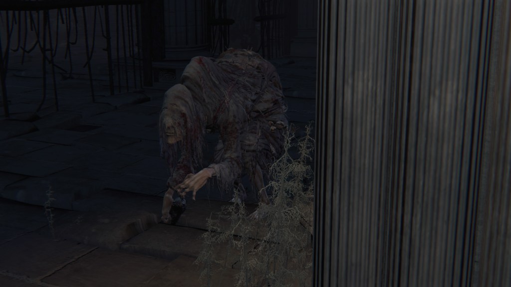 Such research seems to have been the domain of the clergywomen more broadly. Eye collectors in the church are happy to extract bloodshot eyeballs — more than stony lookalikes, at least. Under the School of Mensis’ influence, these bloodied clerics seem to have been dissecting the live prisoners, no doubt curious to examine Willem’s concept of insight. More information on enlightenment, especially in the course of blood evolution, would be a key asset to Mensis’ research. But notably, this leaves the men solely as muscle, snatching and securing specimens. The women were allowed to take the lead in the experiments, whether for practical or cultural reason. It is certainly not for their protection. One eye collector has ended up in the Hunter’s Nightmare, apparently greedy enough to try taking her prize after the victim had already transformed into a beast. And from what we witness, fatal accidents were to be expected.