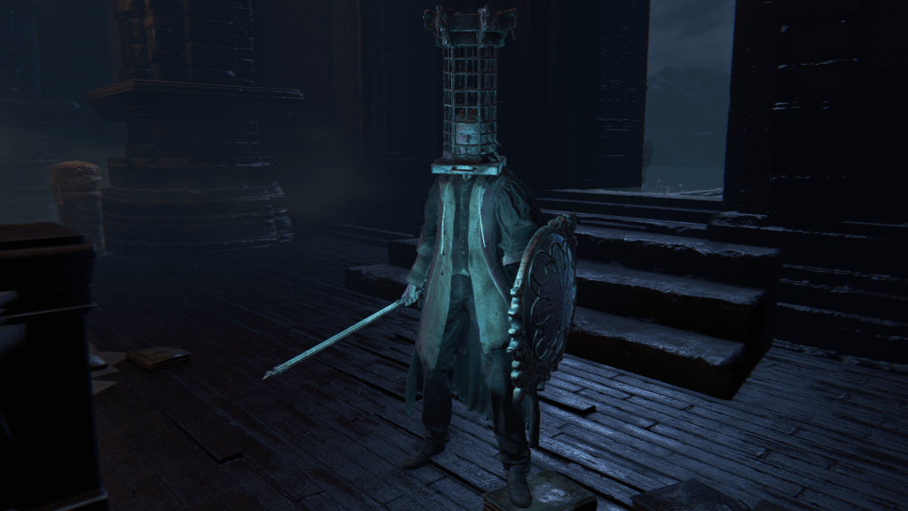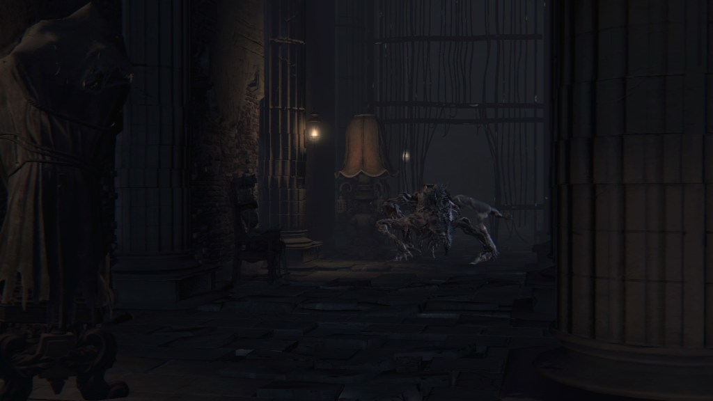In short, the winter lanterns are the culmination of numerous experiments, Mensis scholars starting with animals before applying those principles to themselves. Despite the slight change in plans, they were measured in their response. But as we can see, every attempt has been utter disaster. Even though the upper great bridge is out of the Brain of Mensis’ sight, it is nonetheless filled with stone face pillars, the winter lanterns walking amongst them. More pillars overrun the first church’s rafters normally accessed via the middle bridge; there, where the Brain’s vile gaze still does not reach, another lantern roams. Without a doubt, those experiments have cost Mensis as many lives as the Brain itself. Half of them look to have been expelled to the frontier as a result — a couple subsequently fell into the Hunter’s Nightmare and now terrorize snail women within the Fishing Hamlet’s cave system. Out there, the rejects can wander aimlessly without causing further damage to their former colleagues. This was evidently the policy up until their most recent batch, and it wasn’t just limited to the winter lanterns.