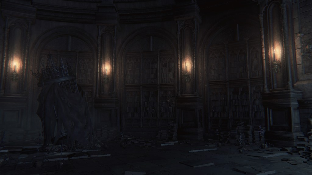 The School of Mensis, however, were not intruders. Rather, the churches were just as much their playground. The second is fundamentally a giant library, with plethora of books no doubt detailing the scholars’ areas of interest. This is because the building also seems to serve as their laboratory. Many of the cleric corpses we come across hold onto various drugs, like blue elixirs and sedatives, as well as ritual tools, like shaman bone blades and their blue mirrors. Therefore, this was the new hub for the group’s experiments. Micolash and Mensis are ultimately owner of this Nightmare. If they wanted a dream, then they saw a use for it in their future as gods. More than likely, the plan was to make the Nightmare a holy land bridging man and Great One — pilgrims flocking to hear preach of the School’s journey to divinity and the secrets to ascension. It is not surprising that having their own church complex was among their specifications to the Wet Nurse. The only oddity is its use as a research facility when it should be unnecessary by that point. But the reason is rooted in why they are still not gods.
