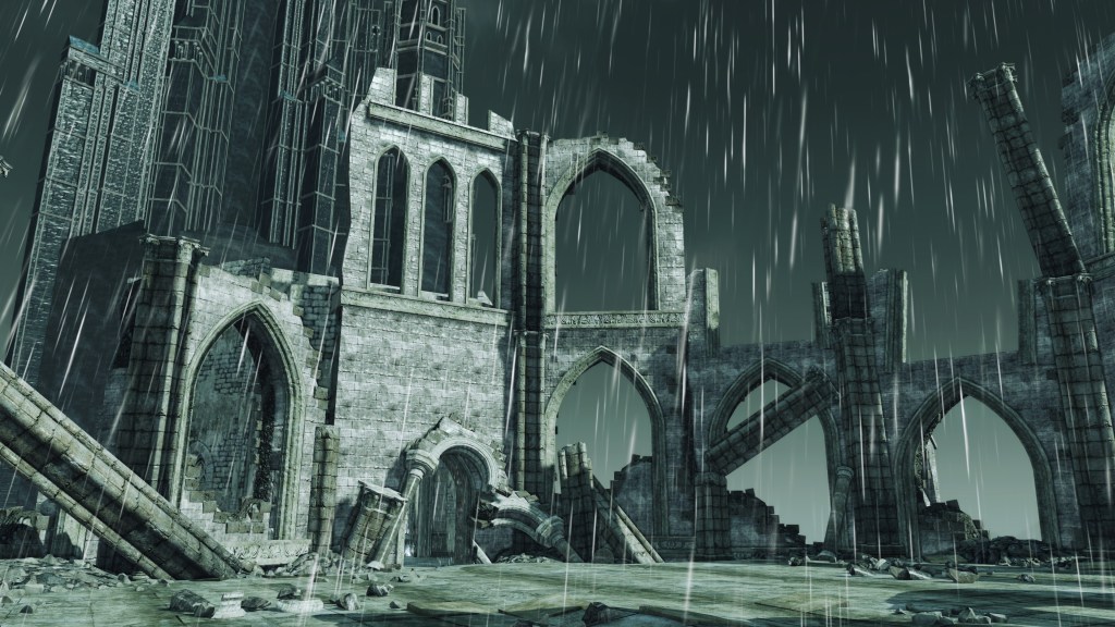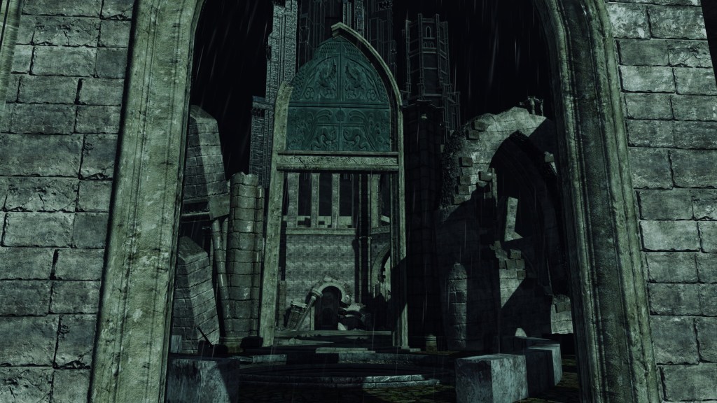 Such fealty has proven undying. At present, the hall of heroes has collapsed, presumably the fallout of the mirror knight stopping countless who had tried to pass him by. As we can see for ourselves, no matter who or how many he faced, he has stood his ground, rain or shine. The fact that the boss has even survived well past the fall of his kingdom suggests that he either, fortuitously, turned Undead or, like Velstadt, is so resolute in his mission that he has persisted long after he should have expired. Sleep or sustenance? That is for the weak — a true hero obeys his king’s command until the duty is fulfilled. The trial against the Looking Glass Knight has evolved a new meaning, now measuring the strength and valor of any who hope to claim the King’s Ring on the path to assuming the real Throne. The failed King’s mission imposed a curse on this loyal soul, and so he must see this perpetual hunt of would-be Lords through to the end. Even in this darkest of nights, he shines a beacon for them to aspire to.