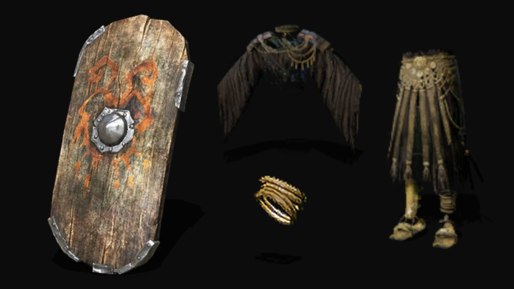 Shield of warriors of the Lion Tribe. It is wooden-made but adorned with metal reinforcement, so lightweight and durable.