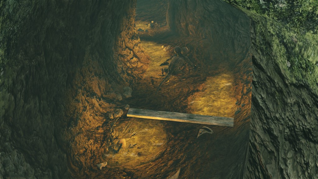 The only nation who fits the bill is Forossa, with their Lion Knights tied directly to their war god Faraam — only fitting, since the king of beasts is a symbol of courage, strength, and military might. It is also reasonable for Forossans to have ended up there. Recall that the Shrine of Winter connects the Shaded Woods to Eleum Loyce. When the kingdom established by Forossans began to collapse, some citizens might have chosen to flee rather than remain in a dying land. But with snow as far as the eye can see, surviving on foot was unlikely. And so, a desperate group would have feasibly used the altar outside the main gate to instantly warp down south. This is consistent with the corpse carrying the Dragonslayer’s Crescent Axe. The body lies just beneath the shrine, holding onto both the axe favored by Lothian and the Golden Falcon Shield employed by Hollows in the area. In other words, the owner looted it from these very woods before death. And considering Eleum Loyce’s proximity to the Dragon Aerie, it is easy to imagine Lothian stopping there on his way to hunting dragons.