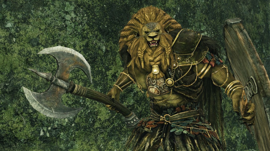 Their transformation certainly wasn’t their intention. The text for their equipment notes that the tribesmen try not to have any relation to humans, slaughtering any outsiders that they come across. This is allegedly because they hate being seen, implying that they are ashamed of their inhuman form. The association with hollowing curse specifically begs some connection between their state and dark souls. The laughing pots and dark scythe found in their territory further indicate attempts to remove a curse born of humanity; their continued failure suggests that strong personal emotions are the real underlying cause. If Velka’s crow-men in DS1 were originally humans twisted by their obsession with their god, then the same can be true for these lion-men. Therefore, the Lion Clan must have originally been humans from a civilization with a developed warrior culture and association with lions.