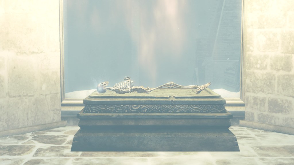 At some point, the Ivory King reached his limit. To be more exact, this seems to have occurred not long after the first priestess had passed. The woman’s body has rotted away in the time since, but her eye to spy the invisible Aava remains, emanating great power. This is odd because the magical device is supposed to be returned upon the completion of a priestess’ duties — a euphemism for her demise. If the body was in the custody of Church Town but not dissected for the eye, then she must have perished not too long before Eleum Loyce’s collapse. The fact that she is left out on the open on an altar reinforces this impression. The body was probably being prepared for the surgery while giving the priesthood a chance to mourn in a kind of open casket funeral. But the king disappeared, and the country fell into disarray, so the process was never finished, a new priestess never to be christened with the eye. Did the first’s natural death affect the man’s link to Chaos? Perhaps, but her successors should have limited any blowback. Rather, the problem appears to have lay with the aging monarch.