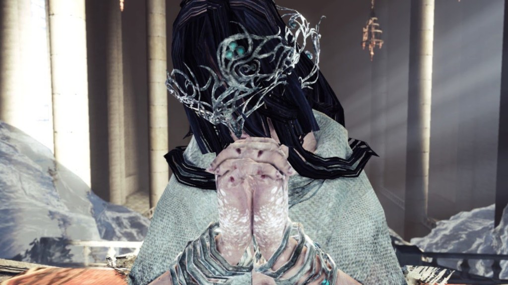 When we make our way into Eleum Loyce, Alsanna’s voice echoes through the cold air warning we “fear” the Old Chaos and leave. Despite her attempts to scare us with words and the one icy tendril, she does not meaningfully stop us from acquiring the Eye of the Priestess or challenging Aava. Even coming face-to-face with her guardian beast, she prays we do not suffer. But contrary to her expectations, we are able to defeat Aava and have an audience with the silent priestess. Although she won’t let us get close, our actions tickle her curiosity, and she reveals her desire to free the Ivory King from Chaos’ clutches with our strength. Although she permits us to challenge the flame with just one knight at our side, we are free to recruit the others to our cause, inspiring each to return to his post and fulfill his king’s last command following us into battle. All of this is very impressive to Alsanna, who truly believed her kingdom was as good as dead. But once again, she was never alone. The spirit of Eleum Loyce remained dormant but was still there. It just needed to be drawn out by a new King.
