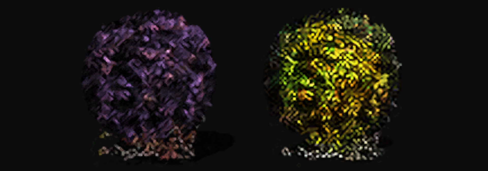 For another example, there is the moss which also thrived in the humidity of Lordran’s forests. Because it was adept at absorbing poisons from its environment, a certain species of moss clumps excelled at detoxifying the body when ingested, the weak poisons it already collected doubling to build up resistance for a body about to be poisoned. However, what we acquire is not the “poison purple moss ball” (毒紫の苔玉) of DS1 but a green “poison moss ball” (毒の苔玉) instead. The moss’ color appears to have changed with the poisonous substances it is removing, purple evidently not the color to associate with poison in the New World — there are exceptions, but cut content suggests that this is because of a decision to change the color scheme late in development, Tanimura confirming concerns about purple overlapping with the newly added dark damage type in the Design Works interview. Although this is not always the case, universal items will transform to meet their circumstances.