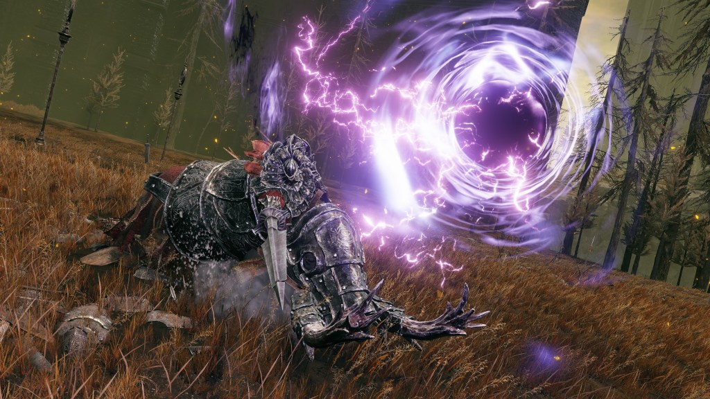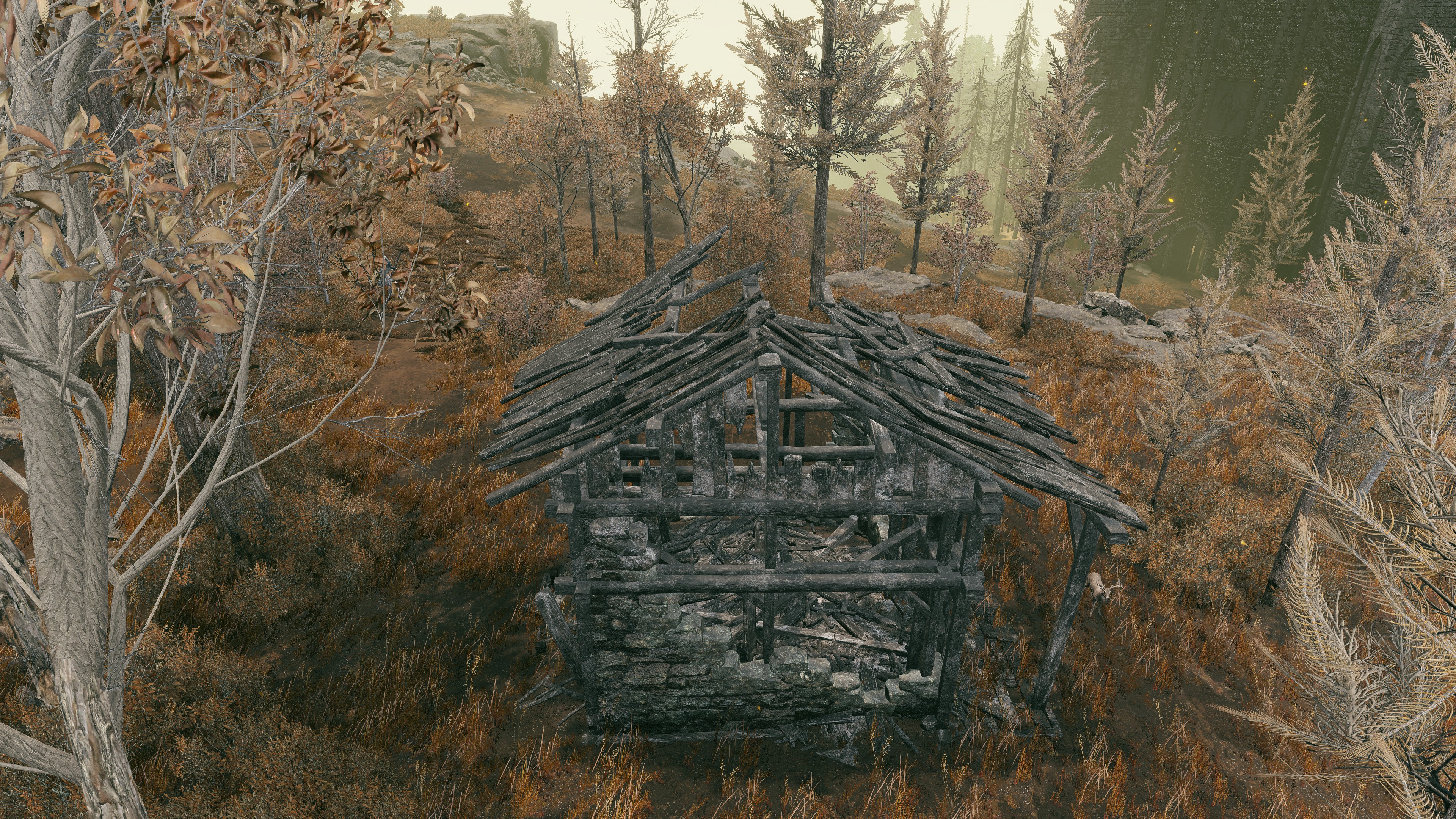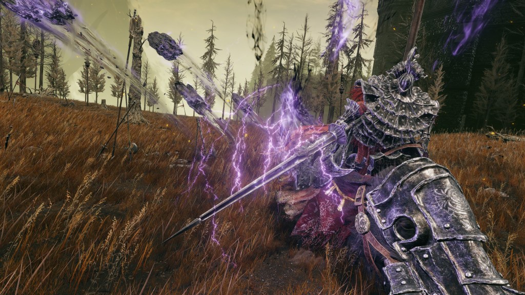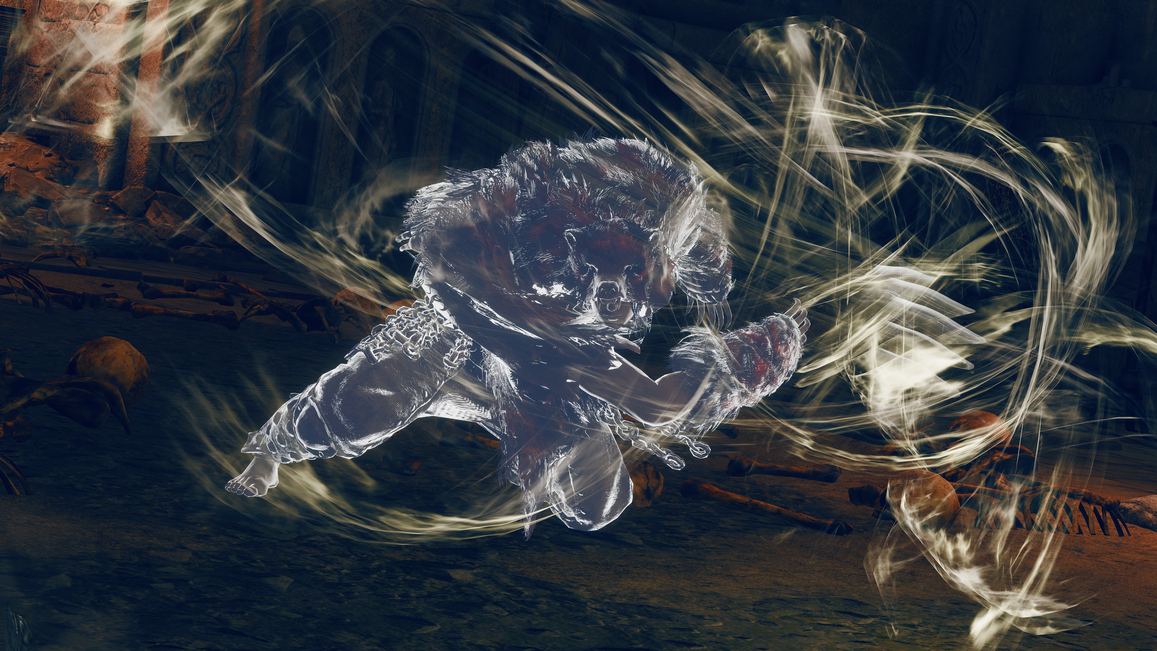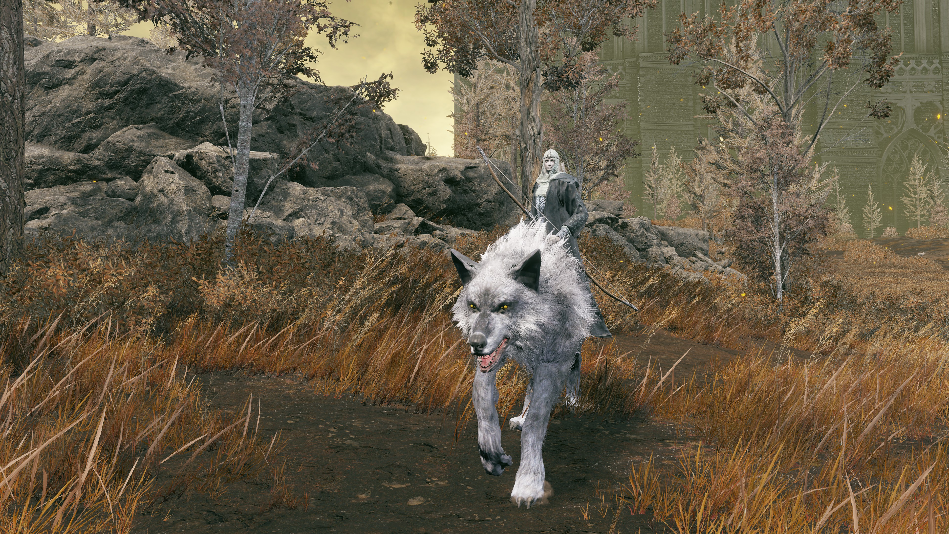 Indeed, Radahn appears to have not been too concerned with seeing the whole inspection team again. The one royal guard knight stayed until perishing out in the field, leaving only ashes of war. Red Bear similarly forgot his name, lost to the madness of bear communion. As a red lion, the surveyor evidently decided to measure himself against an actual wild animal, specifically the red bears. And after killing his first in a brutal life-or-death battle, the bloodied warrior became so enthralled with their naked power that he wants to become a bear. To that end, he has stripped down to simple iron-riveted armor to cover himself in bear skin; even his new helmet, bearing the last remnants of his Redmane past, has since been replaced with a pelt. Such devotion has rewarded the man a red bear’s roar, but at the cost of becoming a thoughtless berserker. Others in the inspection team may have returned with a report, but clearly, they were all free to linger at their leisure. The general was thus probably satisfied if Gaius found happiness in shadow.