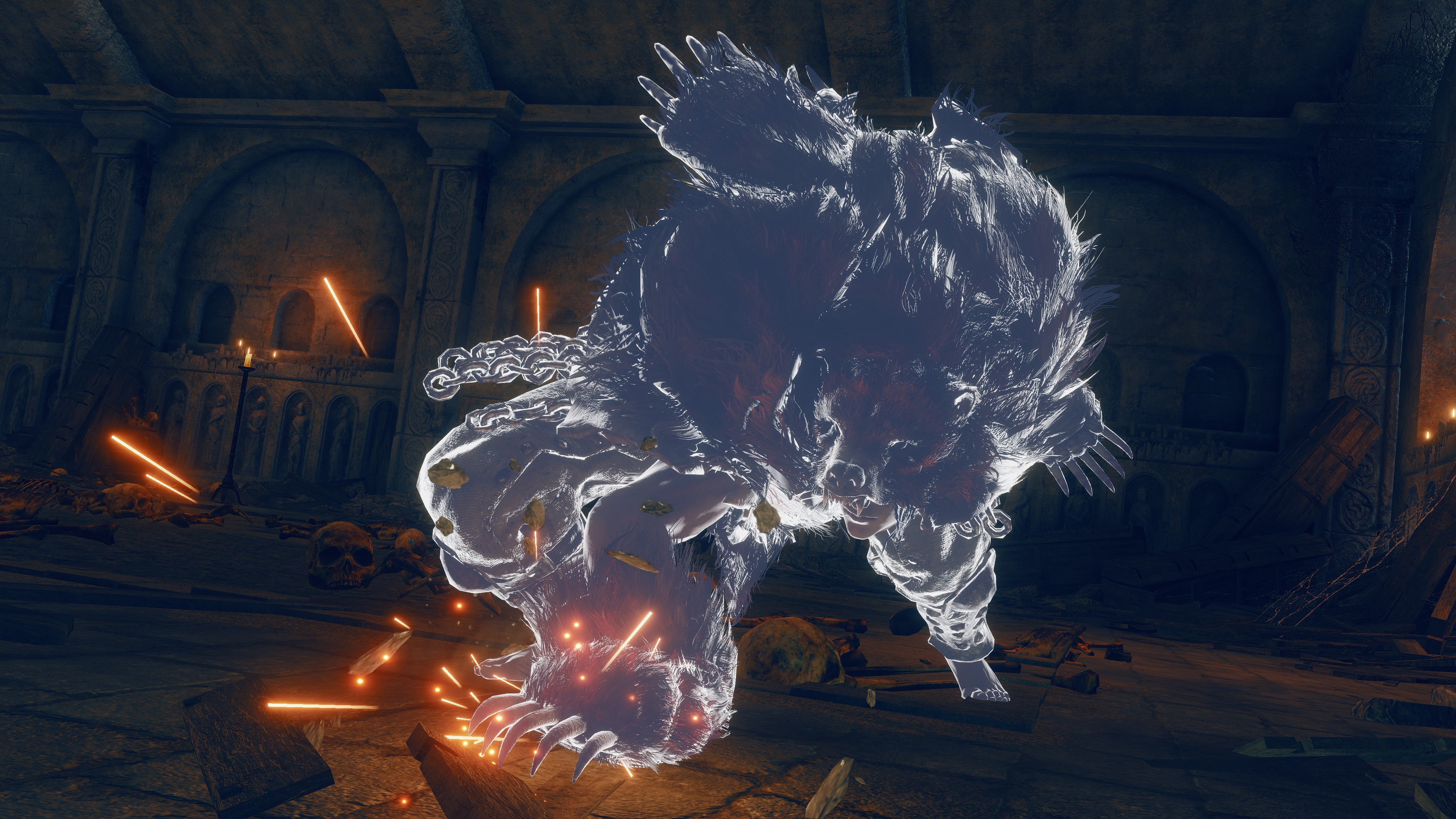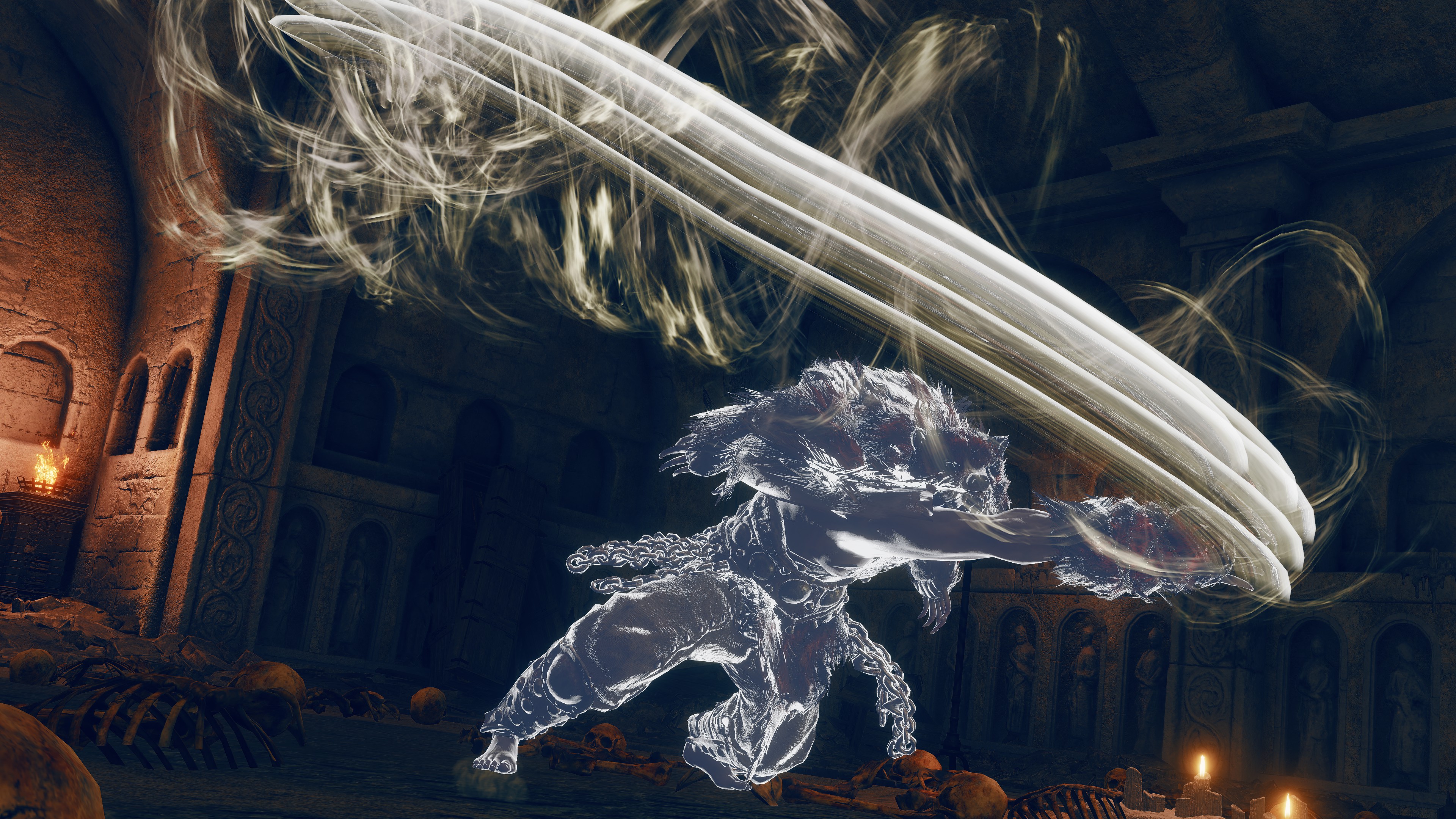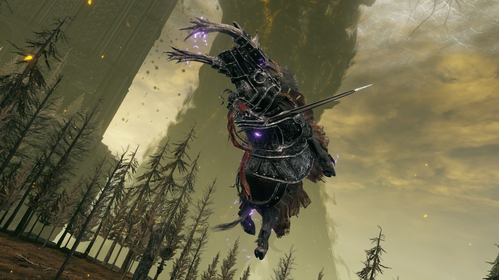 Still, there is always trouble in paradise. With tensions rising throughout the crusaders’ ranks after the Elden Ring was shattered, unrest also began visiting the Albinauric’s unit. The criminals and pagans were sure to notice weakness in their Erdtree overlords’ morale and begin to talk. Soon enough, they had likely all united in a desire to overthrow Messmer during this golden opportunity. Naturally, Commander Gaius stood against them in this, valuing his friendship over any sympathy for those misfits’ plight. The mob’s response? Apparently to burn down his home, though his darling lady friend escaped unharmed. As we can see, Gaius did not take kindly to the insubordination and snuffed out this insurrection before it could truly flare up, at which point we arrive and force him to contend with an intruder — looking at where he rides in from, he must be itching to start rebuilding. That perfect life was short-lived. But for an Albinauric, cursed for being born, Gaius had made the most of it.