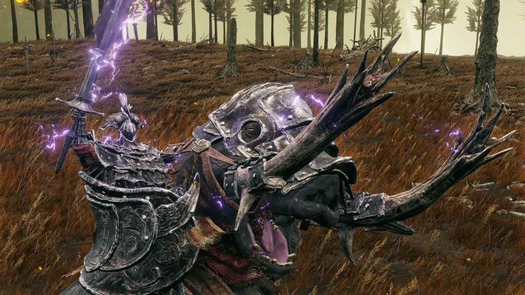 Gaius was an “older brother” to not just Radahn but also Gaea. The name “Gaia” (ガイア) is an obvious parallel to Gaius (ガイウス) and thereby implicitly his female counterpart. But we don’t meet any obvious women, Albinauric or otherwise, who practice gravity arts, least of all unnamed. Who is this mysterious character? Gaius is the name of famous Romans like Julius Caesar, appropriate for someone connected to Radahn; the armor of both him and his personal guard incorporate Roman elements. Meanwhile, Gaia means “the earth” in reference to a Greek goddess embodying the land. In that case, perhaps this Gaea is closer to nature. This brings his formerly wild boar to mind. As his legs, the mount must have been present during his training and no doubt cooperates in gravity arts, body producing the same purple electricity as both twirl through the air or make earth-shattering impacts. Female boars also do have tusks, though typically smaller compared to the males. We can thus conclude that Gaea was the name Gaius gave to his other half, both mastering gravity together from that point onward. His learning was her learning.