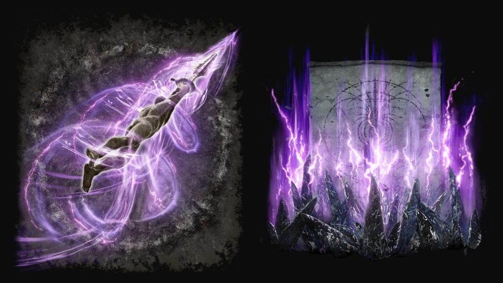 Generates rock-mass blades from the earth. Enhanced with charging.