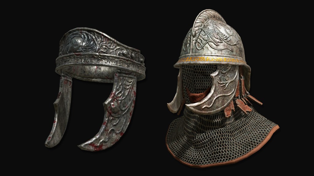 Black iron helmet of the veteran commander Gaius. Part of the armor said to be modeled on a fallen seed.