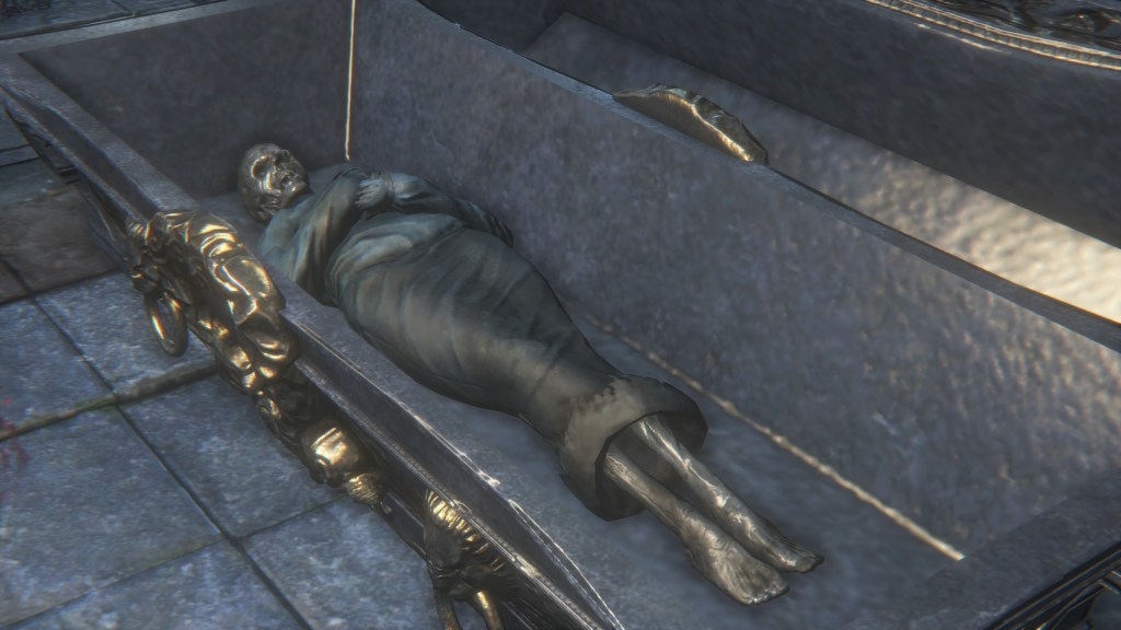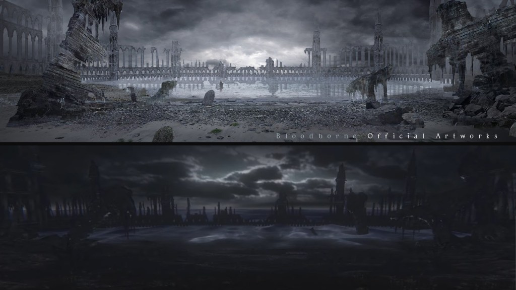 In short, there are the same divine tombs in the world we explore outside the Chalice Dungeons, tombs which anyone could theoretically uncover and enter like any buried ruin. This makes sense, since the chalices break a “seal” on the ruins we explore upon every use — how could anyone outside the labyrinth acquire a cup if the given ruin couldn’t be accessed physically? The chalice rituals only lift the seal on our accessing those ruins, because the game precludes us from any other mode of exploration without the appropriate cup. Essentially, the chalice rituals are purely for our convenience, not narrative necessity, and their supernatural quality opens up more radical possibilities for the dungeons. For example, the appearance of the same unique bosses across multiple, different dungeons can be attributed to them exploring the ruins like us. Put another way, the dungeons aren’t necessarily concurrent with our journey through Yharnam; they may be pockets of the past we insert ourselves in, hence meeting bosses who should already be dead. Each dungeon might thus capture a different point in time.
