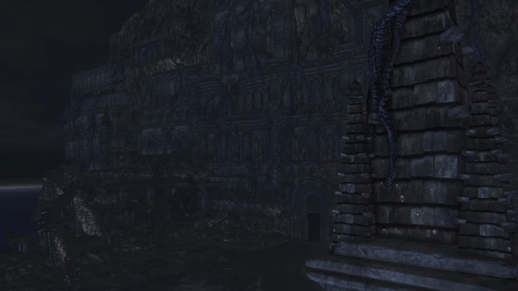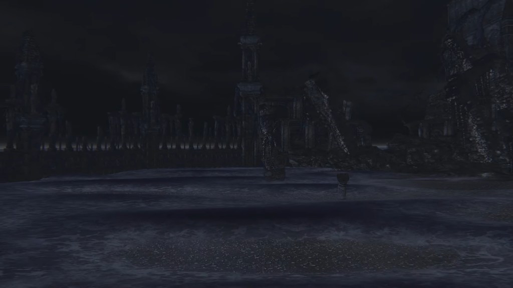 Indeed, some of these oddities with the Chalice Dungeons can be blamed on turbulent development. Cut content indicates that FromSoftware struggled with their implementation. Director Hidetaka Miyazaki admits that they even sparked interest in procedurally generated content in a Future Press interview, which fits with their limited pool of assets. The result is the dungeons lacking variety, many portions only slightly differentiated in a handful of cases — whether we are at depth 1 or depth 5, sunlight somehow pours in through cracks in the ceiling. It is therefore possible that the original concept was to explore a more ancient past to individual dungeons, which finds further support in one of the scrapped boss rooms. This area would have us exit the underground to a part of the ruins located outside, overtaken by the ocean waves; the labyrinth behind us built into a small mountain. Undoubtedly, there was no expectation for the dungeons to lie buried under layers of history and dirt. Ideas changed, but the developers lacked the time or resources for new assets, leading to the inconsistencies.