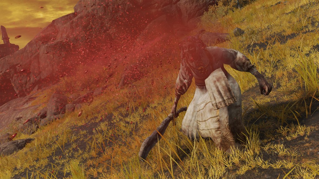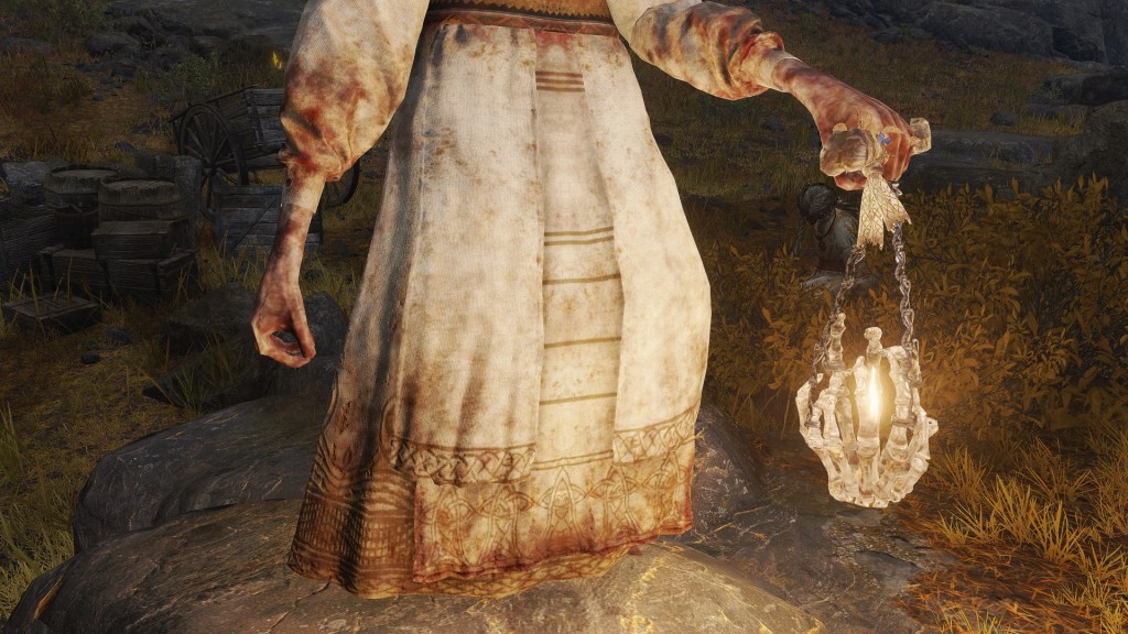 With that in mind, many of the practices do have a sense of ceremony to them. The ritual implements the Dominulans craft leave no part of the body wasted. The young maidens likewise receive blue cloaks contrasting the green mantles of their elders for their key role in the festival. Presumably, this entails performing their first kill, thereby celebrating becoming old enough to join in on the ritual sacrifice. There is no denying the respect afforded to this hallowed event. But whatever its trappings of civility, this festival is nonetheless savage. Ignoring the one instance of a makeshift cookout, the women consume their meat raw, biting their arms to spray a poisonous bloody mist. Moreover, the skills for their bone weapons mainly consist of Barbaric Roar and Wild Strikes, demonstrating how this agrarian settlement behaves no better than the highlanders living out in the wooded countryside. As to why they specifically developed a cannibalistic matriarchy, we need to look west to Mt. Gelmir.