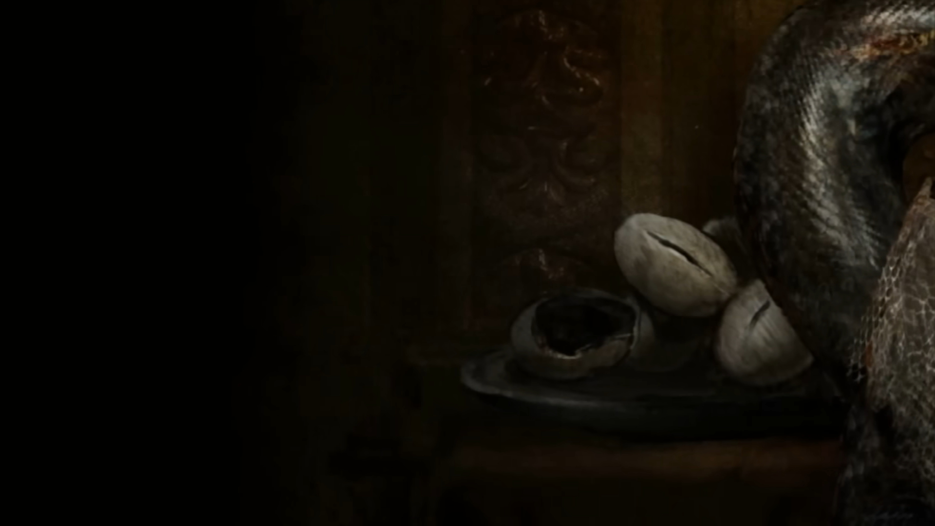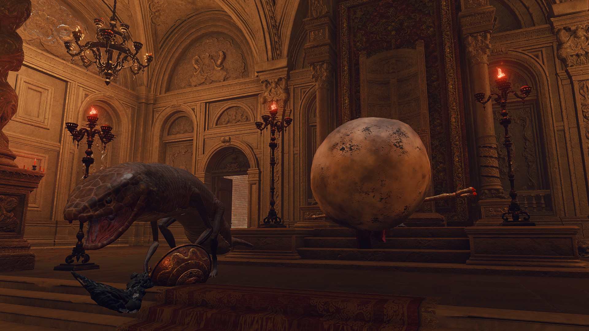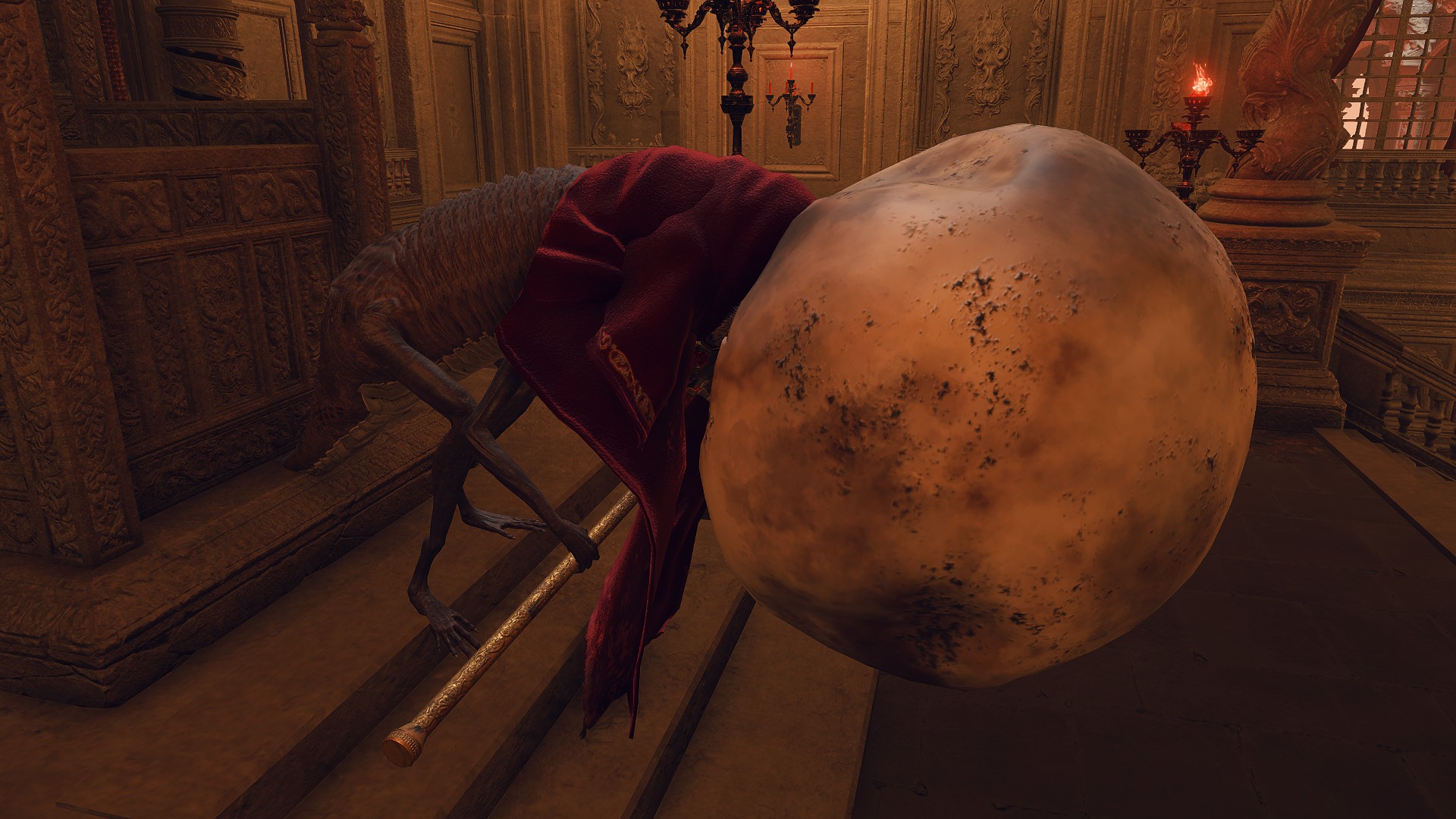 After devouring Rykard, the immortal snake gave birth to man serpents, her undrying amnion left on the altar in the Temple of Eiglay with a fetus still wrapped inside. Some fans have even posited Eiglay as the name of the serpent, since the church additionally enshrines a giant snakeskin consistent with the deity. “Ehgleh” (エーグレー) does closely resemble Eglė, (エグレ) the name of a Lithuanian folk hero who became Queen of the Serpents. The word construction may further be a play on the phrase “egg lay”; (エッグレイ) to that point, one snake-man styling himself a king, complete with stereotypical red cloak and golden scepter, wears a giant eggshell for a crown. The obvious implication is that the equally venemous snake-men are the god’s successors, having come from her eggs and amnions. Even though the throne this “king” stands in front of in Volcano Manor is most likely reserved for Rykard — who considers himself the Serpent King — it nonetheless cements the great snake as a kind of royal mother.