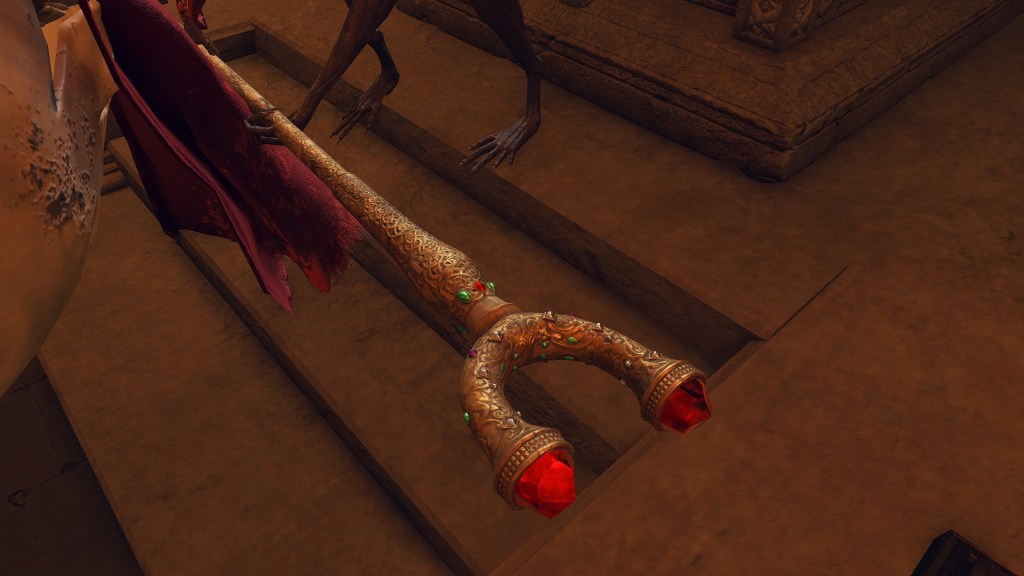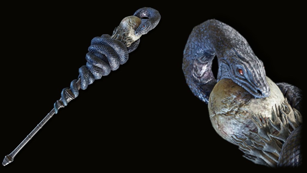 Scepter of the great snake devouring the world. A symbol that the Ruler of Blasphemy will one day raise. One of the “legendary weapons”.