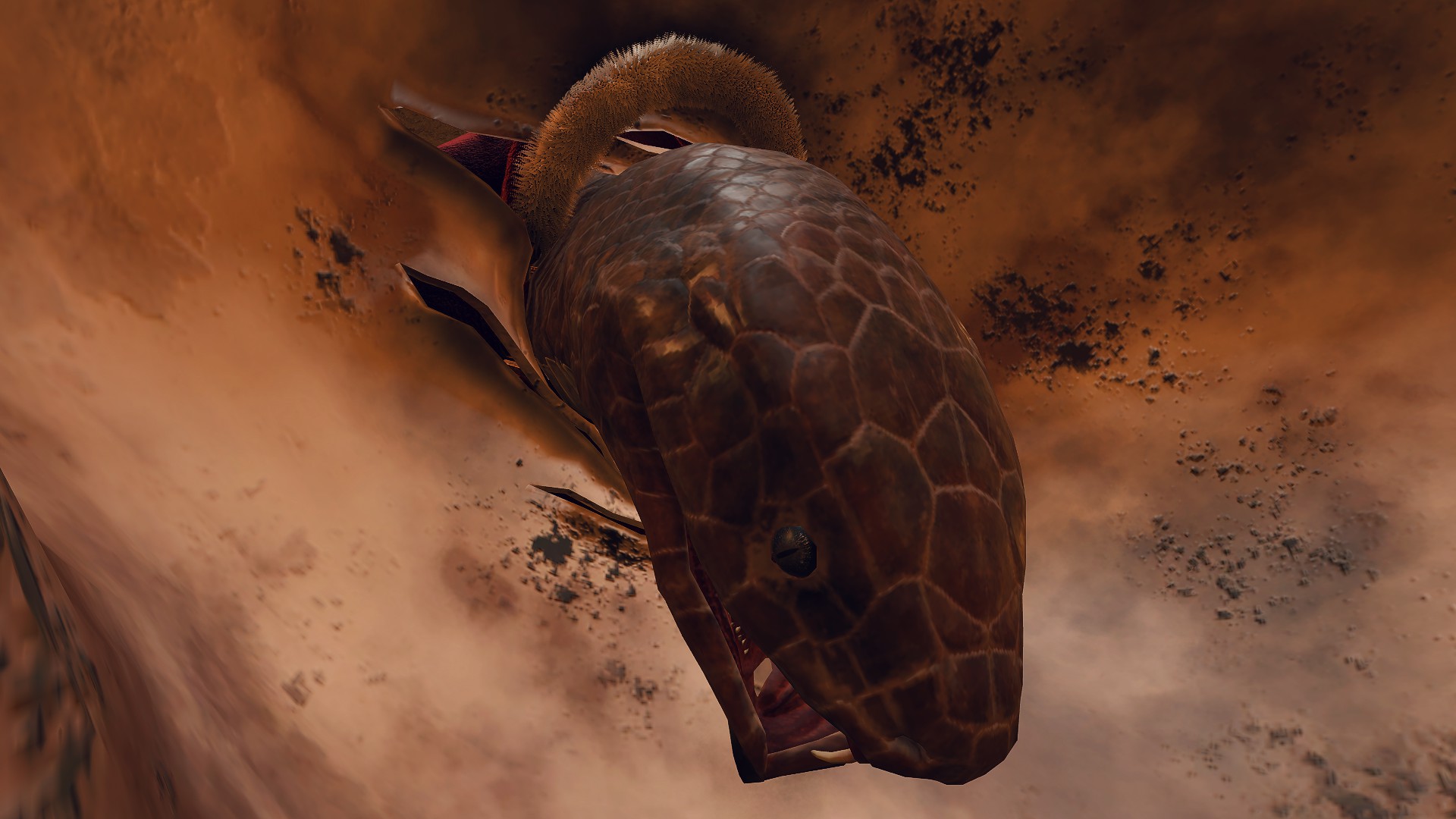 Nevertheless, it was still a “great snake” before the Serpent-Hunter was first used, owed to some connection to the divine. The god’s growth to great size may have even been slower at the time, due simply to food availability. The snake has an obvious preference for people, whether that means devouring them in pieces or wholesale. Serpents are indeed known for swallowing prey whole, but the serpent god demonstrates out-and-out greed, practically every step through its boss room littered with human remains yet to be devoured. Parts of the great snake’s body have burst open because of its gluttony. So many have been consumed, body and soul, that arms and arm-like tendrils begin flailing out of the gaping holes when the snake is no longer in nominal control of its form. The creature is a voracious eater, and this single-minded focus on growing through a steady diet likely ties into its goals on earth. As he neared demise, Rykard saw a vision of the god becoming big enough to devour the planet. And since he was being assimilated into its body at the time, this must be a peek inside the creature’s mind.