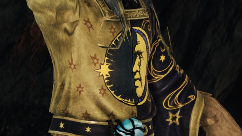 Of course, “the stars” collectively refer mainly not to the sun and moon but the twinkling lights between them. While DS1 remained silent about the existence of these stars, astrologist attire undeniably depicts them alongside the more familiar bodies, and we can see stars filling the sky in wake of the setting sun at Heide’s Tower of Flame. They are present and numerous, but what are they? They shine similar to the sun, but they cannot simply be fire itself. Rather, they appear in association with night like the moon — in other words, in the sun’s absence. Just as the sky separates flame from the rock it transforms, it brings the tiny lights and rock together. The source to stars therefore must have some presence on earth distinct from flame. And yet, just as how moonlight is a derivative of sunlight, a star can be imagined as its own miniature sun. If moonlight denotes the power of flame filtered through rock, then starlight should also tie back to flame in some manner. And when it comes to the power of fire distinct but associate with earth and distant from its source, only one comes to mind: Disparity.