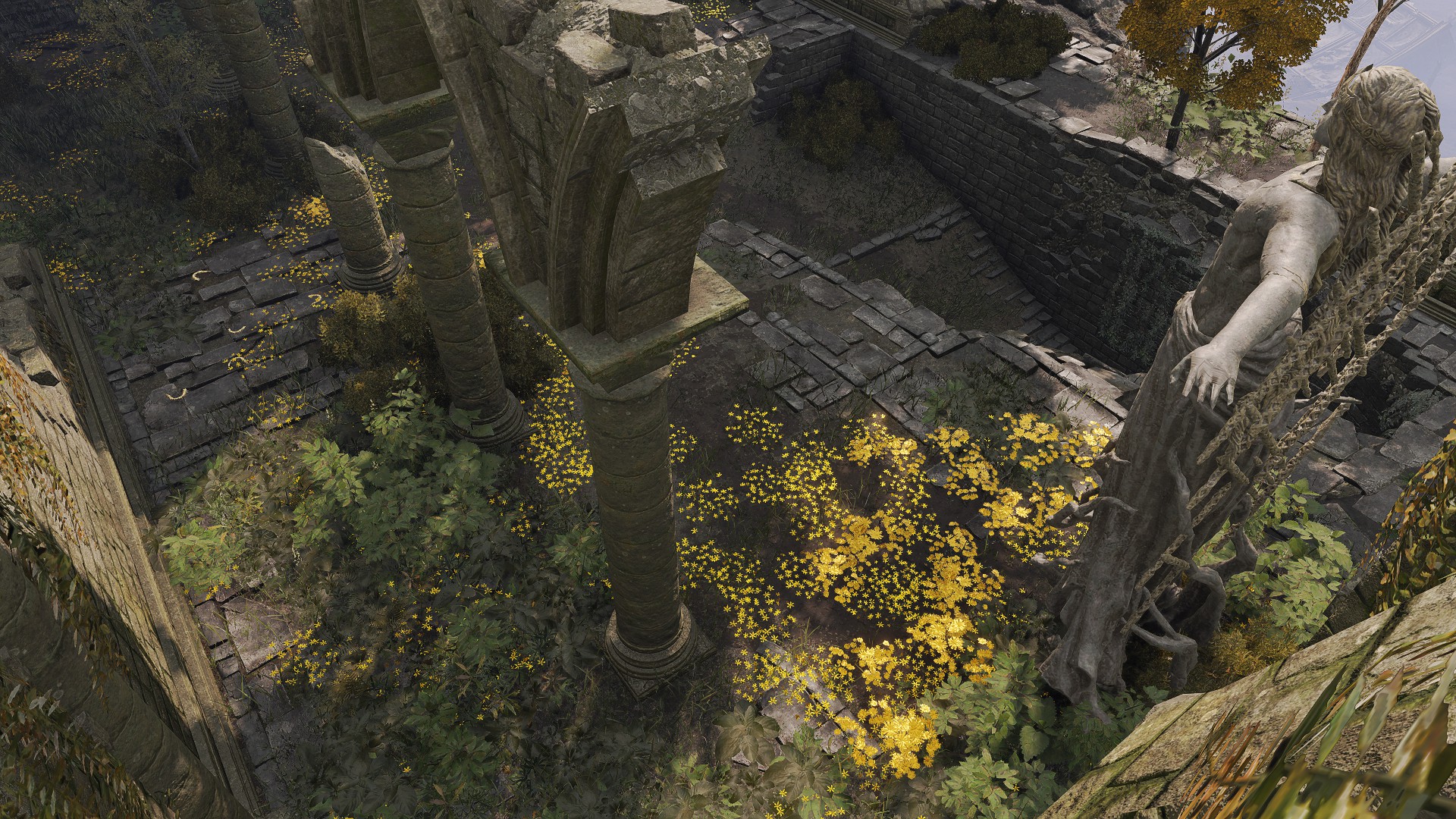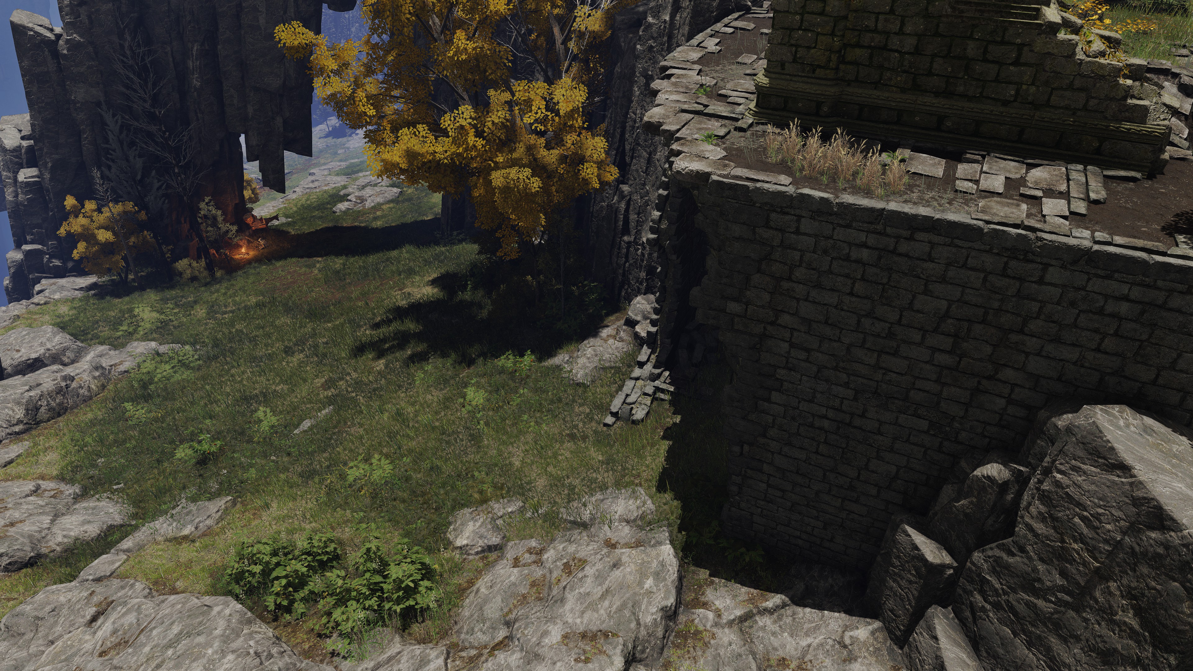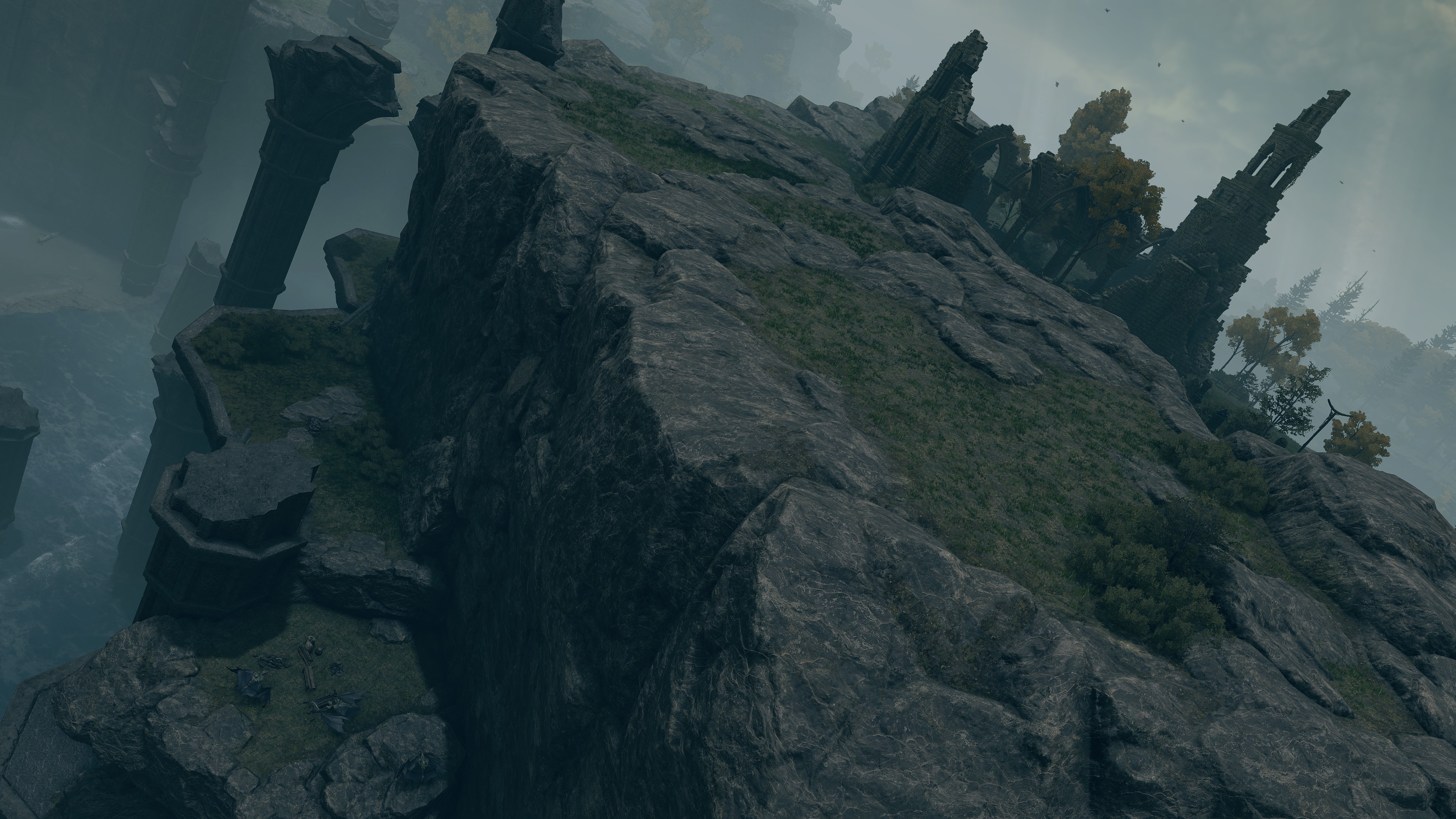 The question, then, is what area of incantations was Radagon pursuing which Marika had neglected? There were many sects of prayer outside the Erdtree chants the queen was familiar with. One of these might have been the Ancient Dragon Cult which had more recently emerged in her capital. Past the Ancient Dragon War monument lies the Stormcaller Church enshrining Radagon’s statue. This implies that the man was present on that battlefield at some point. But it is Godwyn, not Radagon, who distinguishes himself in the actual battle, and there is otherwise no indication that the red-haired hero participated in that clash between demigod and ancient dragon. Why then build a church of Radagon on the site? For research. Although the building is nowhere near as extensive as the Minor Erdtree and Third Marika Churches, it does grow the small golden flowers across its entire floor in similar fashion. It may have thereby served as another, smaller laboratory for investigating gold on the plateau. Specifically, this hill is the perfect location for independent research into the ancient dragons’ powers.