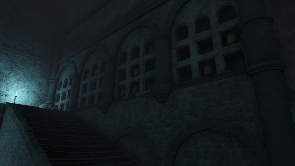 The Auriza Side Tomb is a curious construct. Located across from the Auriza Hero’s Grave, the catacomb chiefly inters not corpses, in the traditional sense, but pots of flesh. While using jars for Erdtree Burial isn’t unprecedented, nowhere else do they feature so extensively, with vessels stored in loculi on top of placement at every corner. Not just inert but even living jars are unusually common in this crypt, and that is ignoring the fair number of imps throwing explosive pots; we can even loot a good number of cracked and ritual pots for our own crafting purposes off the ground. The only other time jars take such precedence in burial is as offerings for Minor Erdtrees on the surface. Why then lean so heavily into that method of burial for a catacomb? It becomes all the stranger when considering the use of blue magic flames for lighting, with imps throwing magic or lightning pots specifically. One would suggest the involvement of sorcerers, yet the other implicates the ancient dragon cult. Neither fits a graveyard to the Auriza. Why do the Auriza hero graves even have “auxiliary graves” (副墓) to begin with?