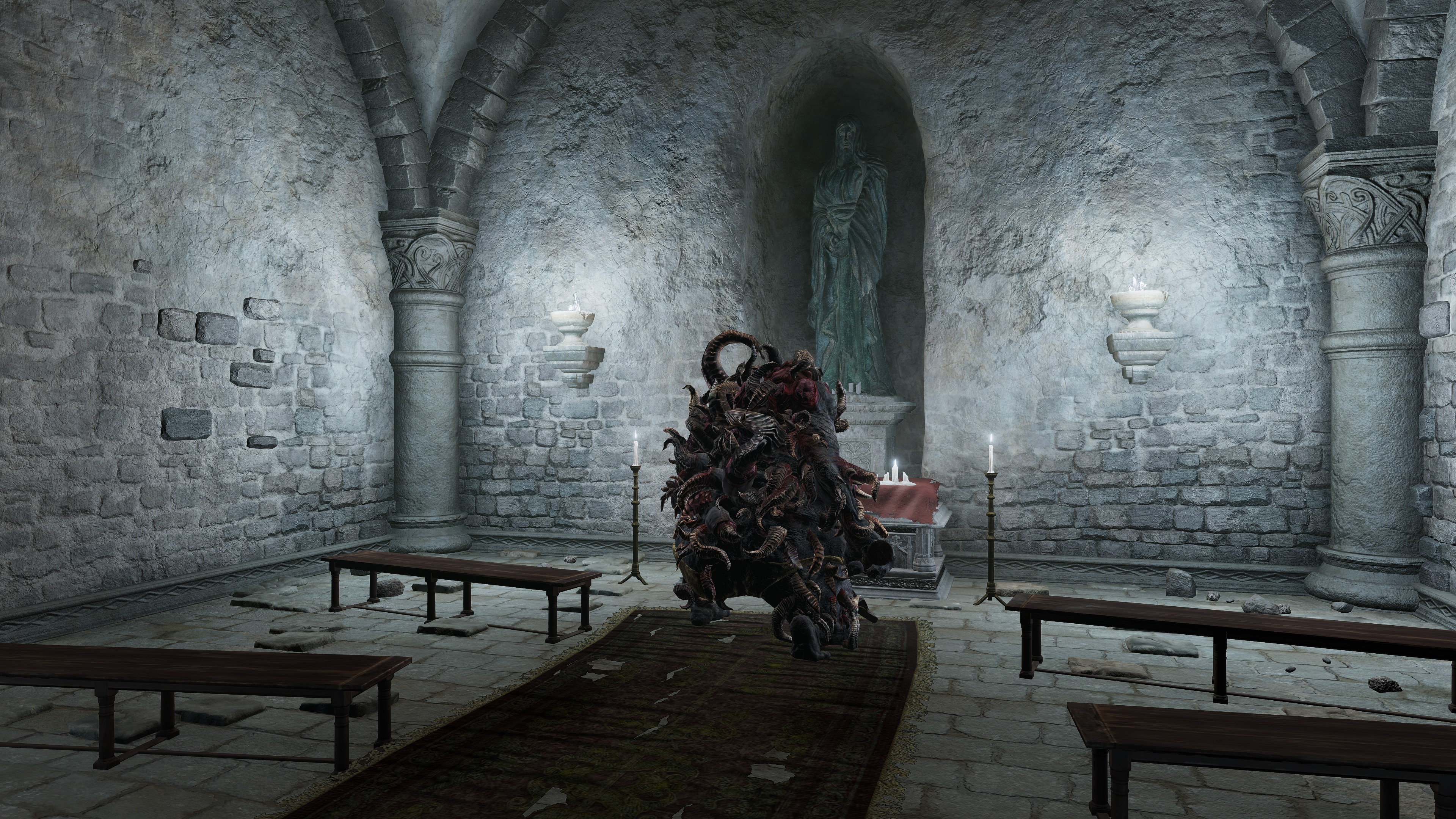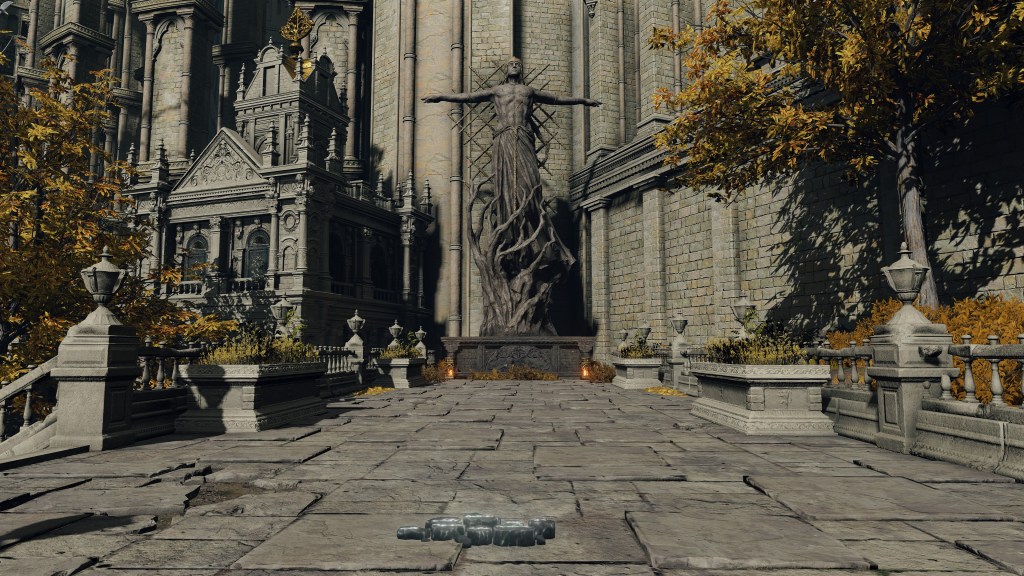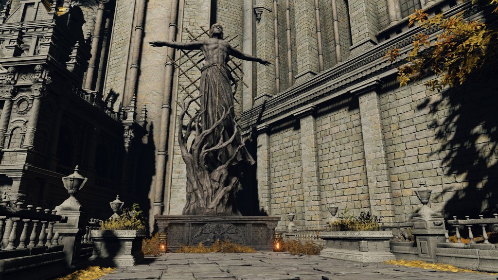 As if to reinforce that implication, performing the Law of Regression before the Elden Lord’s statue reveals the secret it hides: the figure is actually the Eternal Queen. In the course of the job, the sculptor glimpsed the truth about Marika and Radagon, subsequently imbuing their secret into the stone masterpiece. This could hardly be an accident. In typical prankster fashion, Marika uses mimicry to hide the statue’s true form, just like with her Mimic’s Veil. Requiring the Law of Regression to dispel it is her cheeky challenge to the priests passing by. If they studied the Principia and the keys to Fundamentalism, then they could easily unveil the truth about their god. The fact that Miriel has only heard rumor of a secret existing betrays the public’s failure to realize this truth hiding in plain sight. One wonders what became of the sculptor after designing Radagon’s figure for the mimicry and future churches — a curse of silence or untimely death both seem equally liable. Regardless, it shows how Marika was holding her priests to a high bar, impressing the importance of her other half and his revelations.