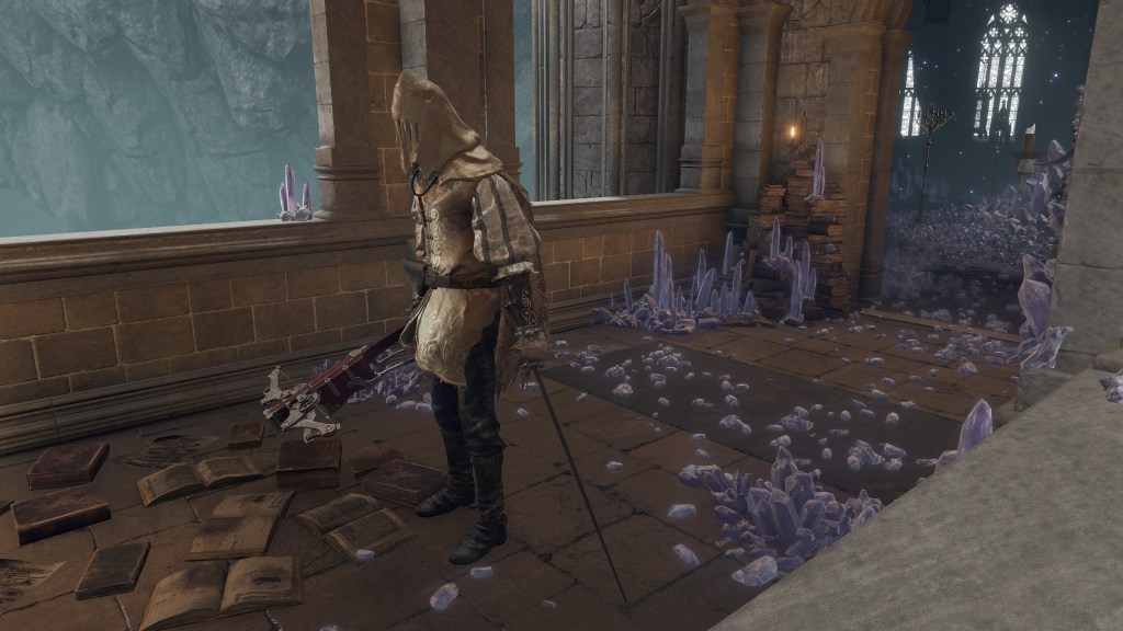 That didn’t necessarily mean that the elite’s hearts weren’t in it. Over in Raya Lucaria, we can collect Azur’s Glintstone Staff from the graven school formed in the Church of the Cuckoo’s private tower. The catalyst’s appearance suggests that the student responsible for continuing Sellen’s work previously met Azur after he began to crystalize in the Hermit Village. What’s more, standing guard outside the chamber is a high page, meaning that this was a fundamentalist noble. But seeing the village, it isn’t that odd. The Craftsman’s Shack has a corpse carrying the Pulley Crossbow, affirming that Fundamentalism’s genius artisan resided there. A secluded village full of sorcerers is perfect for academic discourse. Fundamentalists must come and stay to advance their reasoning and brainstorm, one aristocrat taking Azur’s Staff before attending Raya Lucaria to secretly study more about primeval sorcery. The lack of a body betrays how the staff was left behind when the noble joined the resulting ball of sorcerers, but it still exhibits the sincerity to learn as a person of faith and privilege.